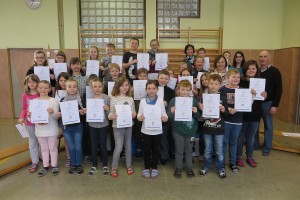 Die Kinder mussten 300 Meter auf der Übungsloipe absolvieren. Alle Teilnehmer und Teilnehmerinnen schafften die Runde erfolgreich. Es gab eine eigene Wertung für die Buben und eine für die Mädchen.