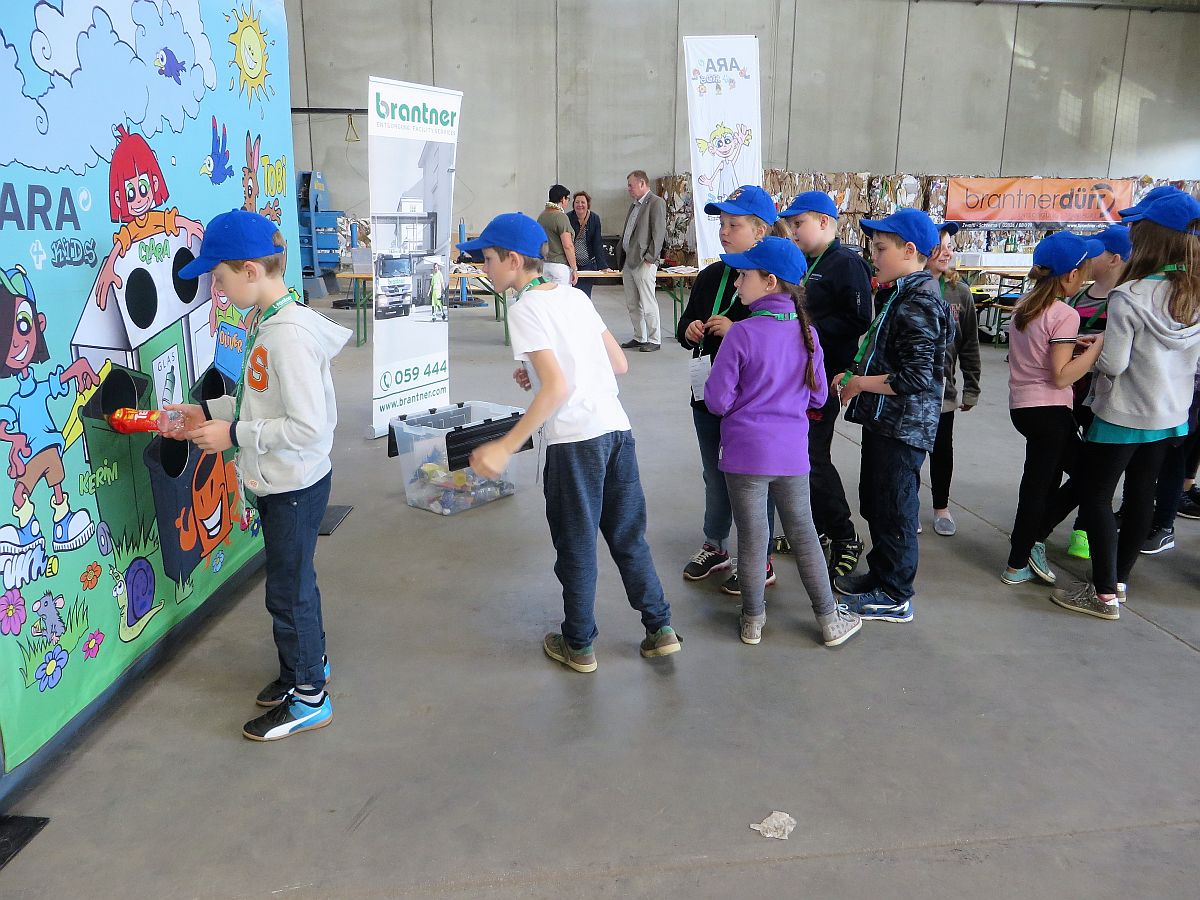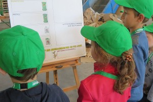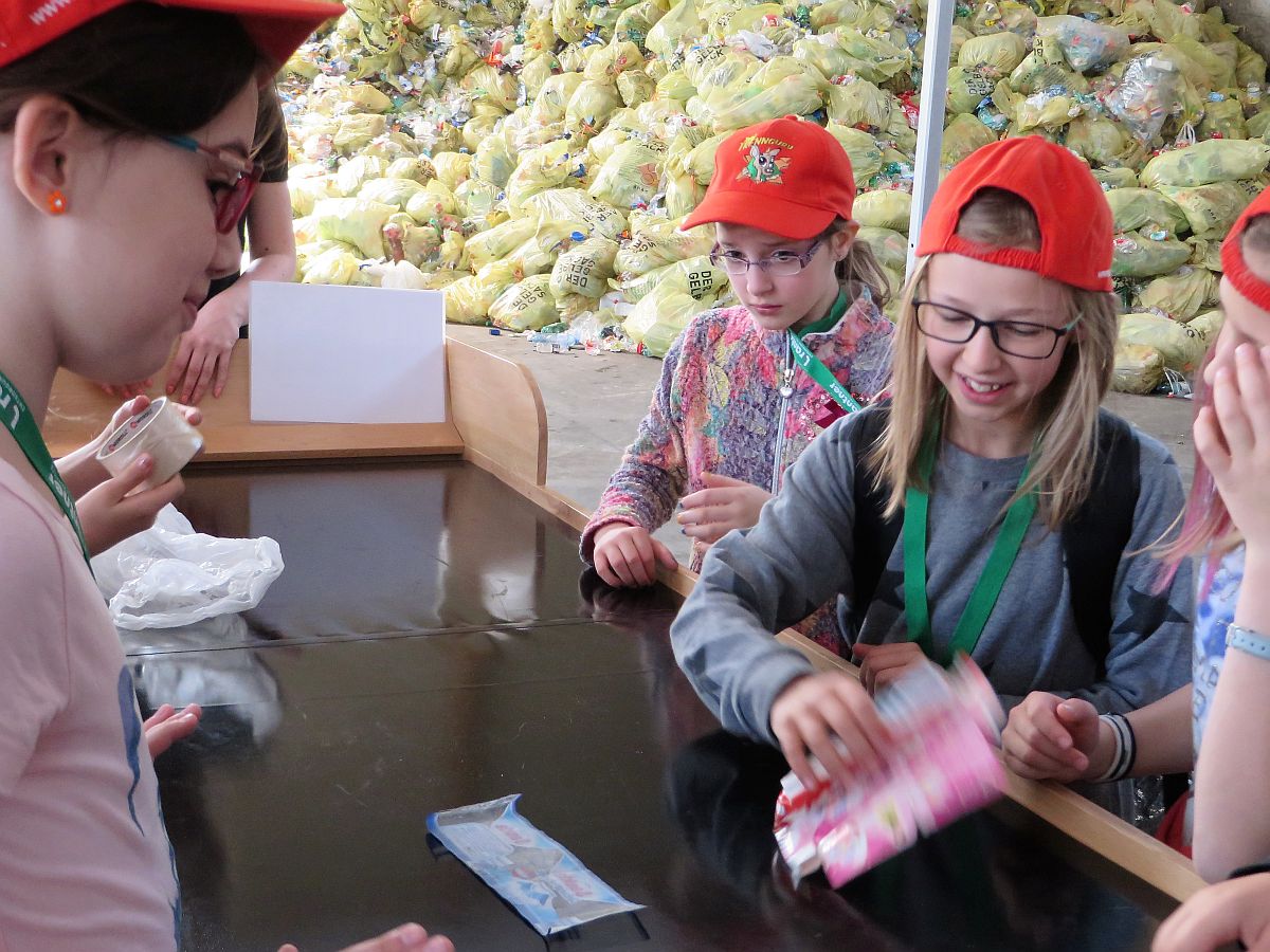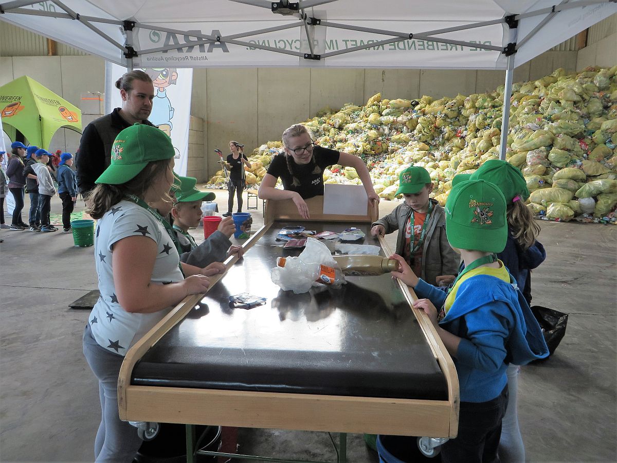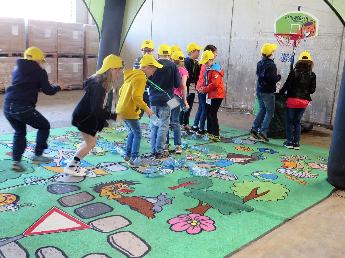 Dort erwartete uns schon Tobi Trennguru, das schlaue Känguru, das weiß, wie man Abfall richtig trennt. An zahlreichen Stationen konnten die Kinder ihr Wissen über die Mülltrennung unter Beweis stellen. Auch beim Papierschöpfen durften sie mithelfen und das Blatt mit Blüten verzieren.