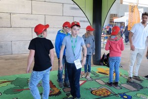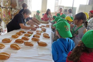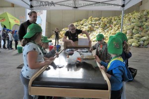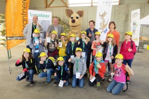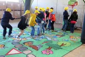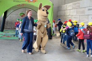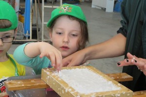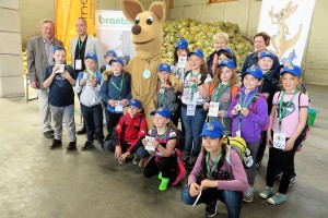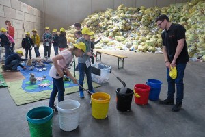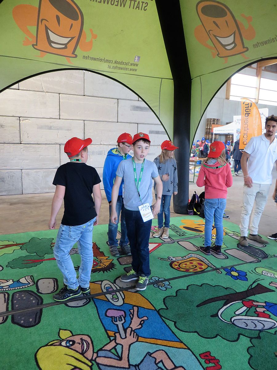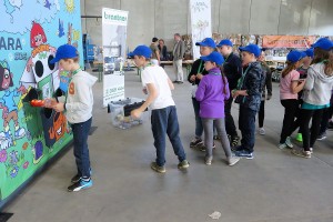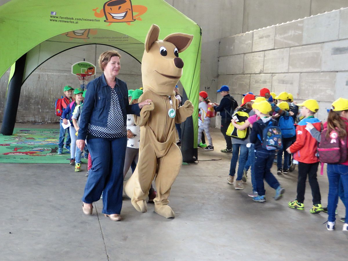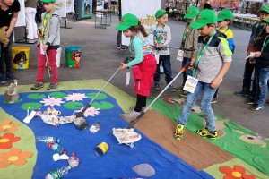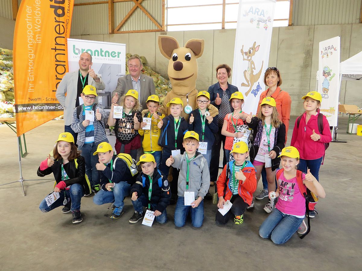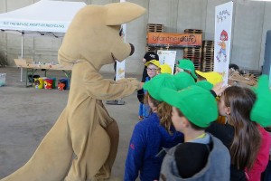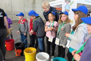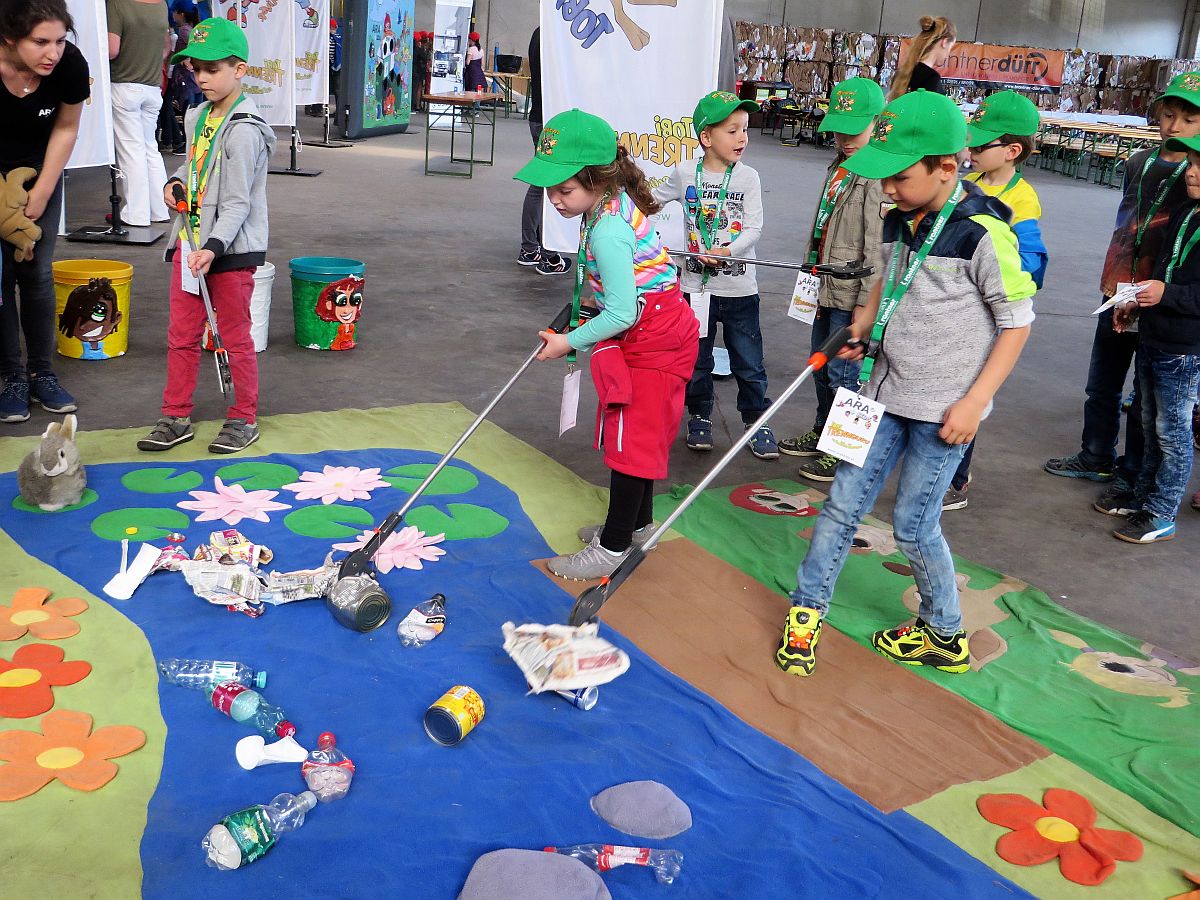 Dort erwartete uns schon Tobi Trennguru, das schlaue Känguru, das weiß, wie man Abfall richtig trennt. An zahlreichen Stationen konnten die Kinder ihr Wissen über die Mülltrennung unter Beweis stellen. Auch beim Papierschöpfen durften sie mithelfen und das Blatt mit Blüten verzieren.