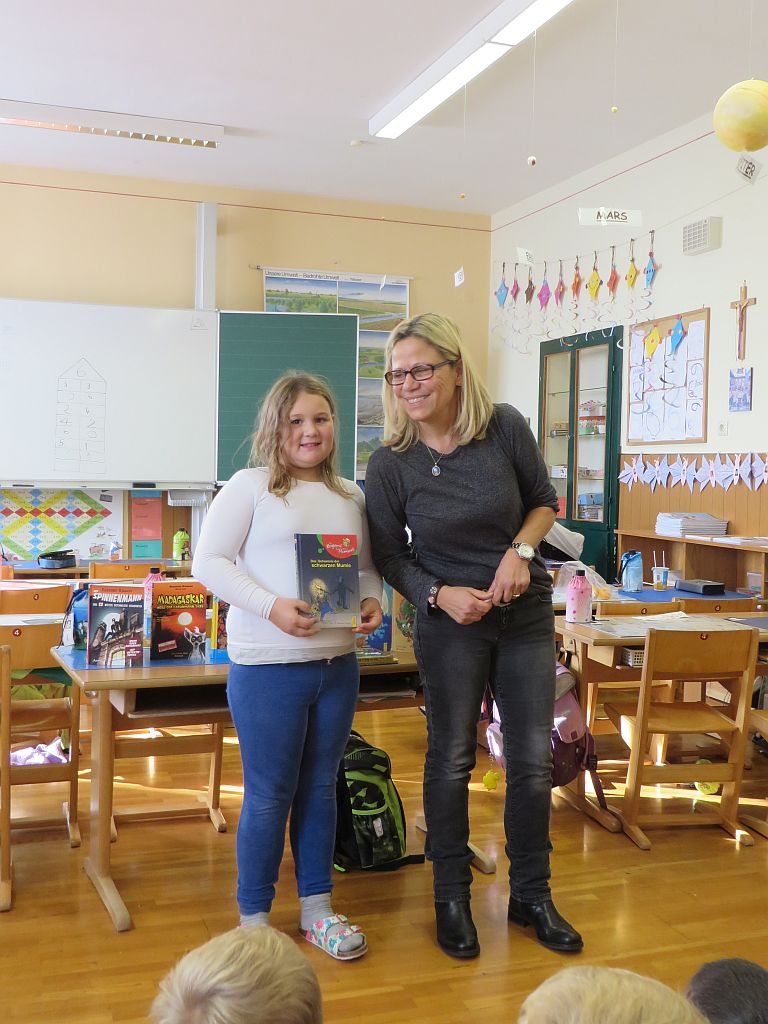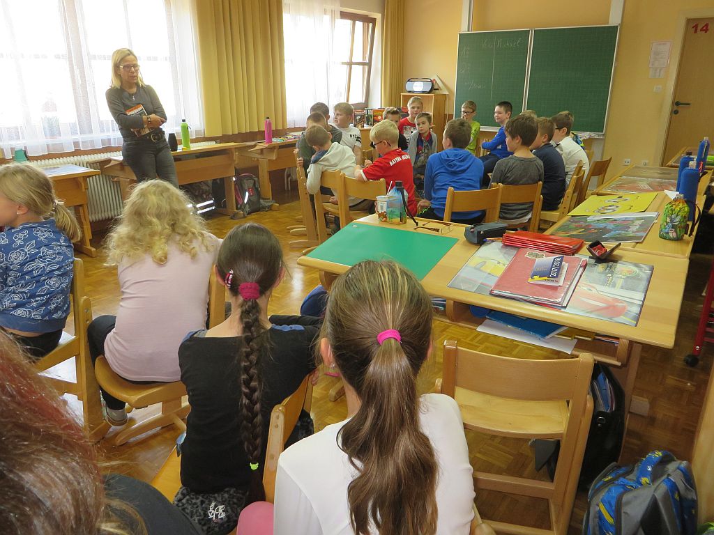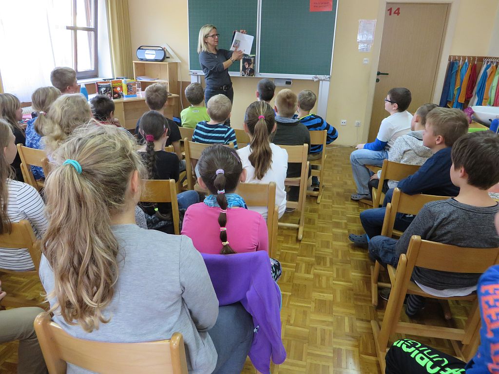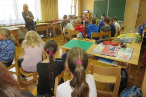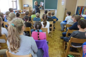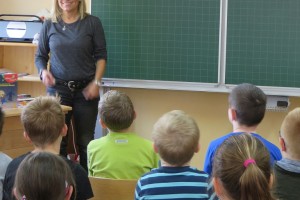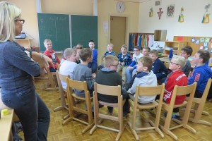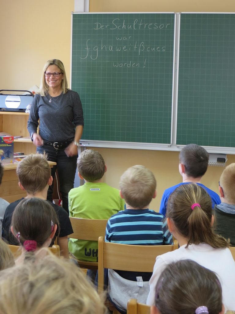 Jeweils für die Kinder der 1. und 2. sowie der 3. und 4. Klasse gestaltete sie eine Unterrichtseinheit, die sicherlich lange im Gedächtnis bleibt. Nach einer kurzen Vorstellung ihrer Person und einiger Bücher startete sie mit den Kindern in ein spannendes Krimiabenteuer. In zwei Gruppen fieberten alle den Rätselfragen entgegen und wer hätte wohl gedacht, dass beide Teams den wirklich kniffeligen Fall lösen können.