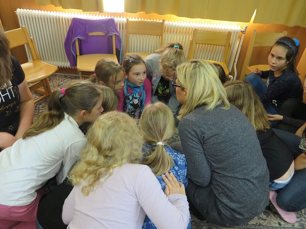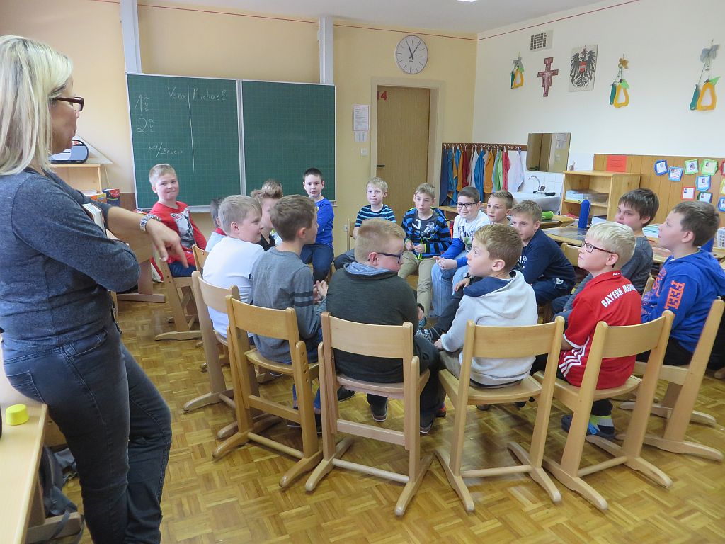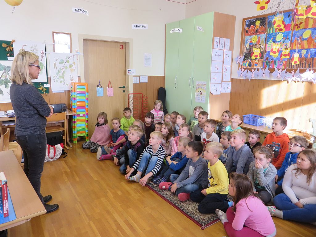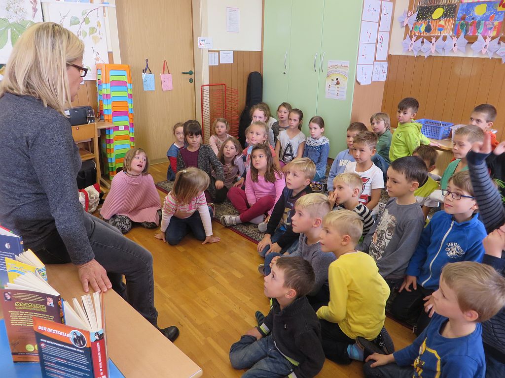 Jeweils für die Kinder der 1. und 2. sowie der 3. und 4. Klasse gestaltete sie eine Unterrichtseinheit, die sicherlich lange im Gedächtnis bleibt. Nach einer kurzen Vorstellung ihrer Person und einiger Bücher startete sie mit den Kindern in ein spannendes Krimiabenteuer. In zwei Gruppen fieberten alle den Rätselfragen entgegen und wer hätte wohl gedacht, dass beide Teams den wirklich kniffeligen Fall lösen können.