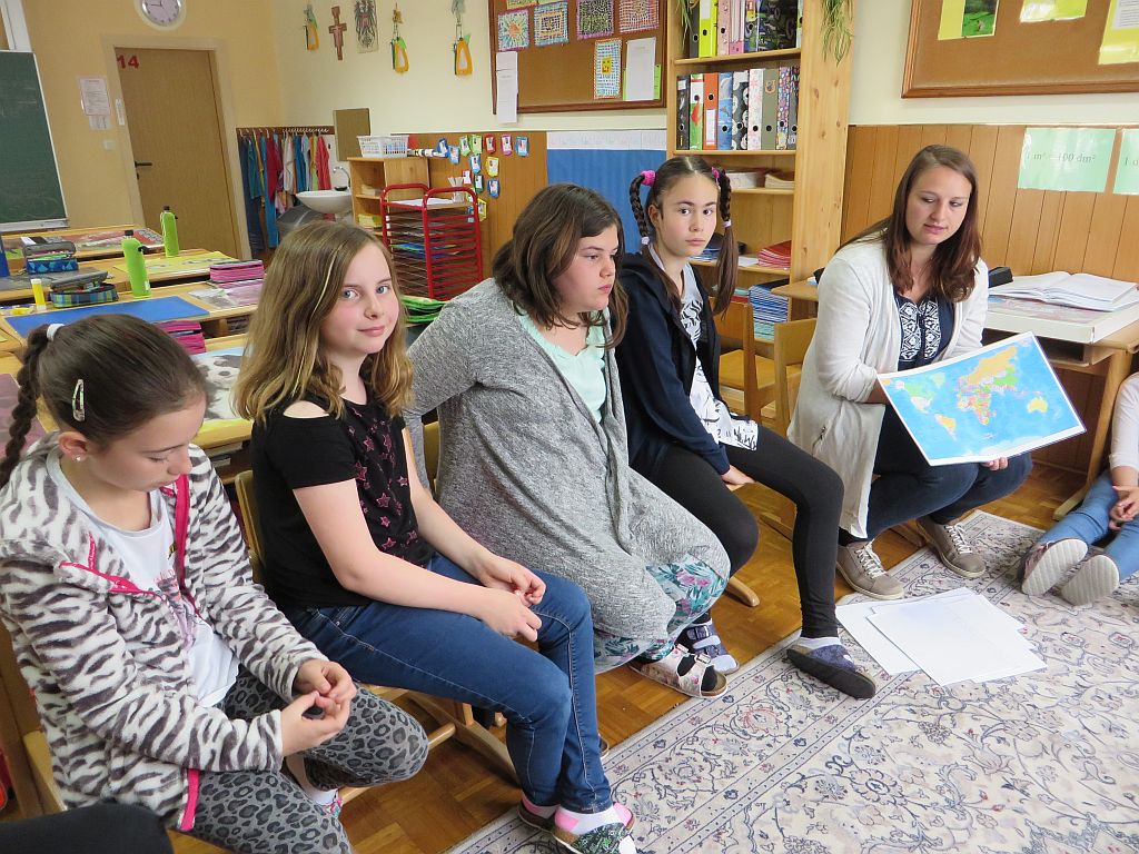 Mit den Kindern reflektierte sie Themen wie Wasserbedarf, Wasserverbrauch und sparsamen Umgang mit Wasser.