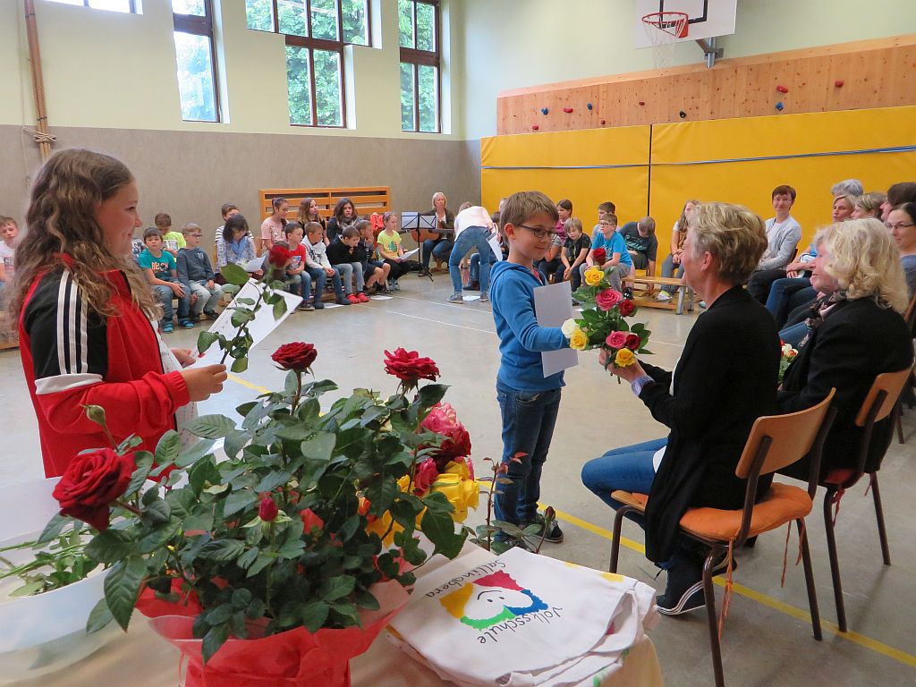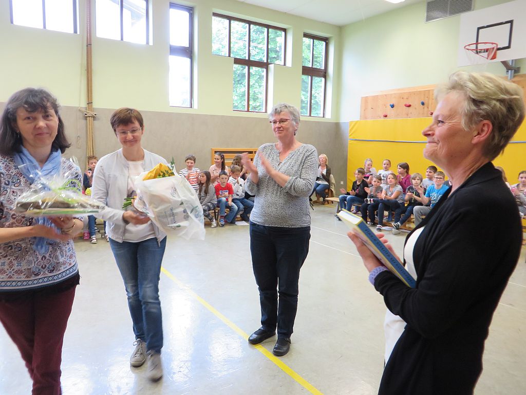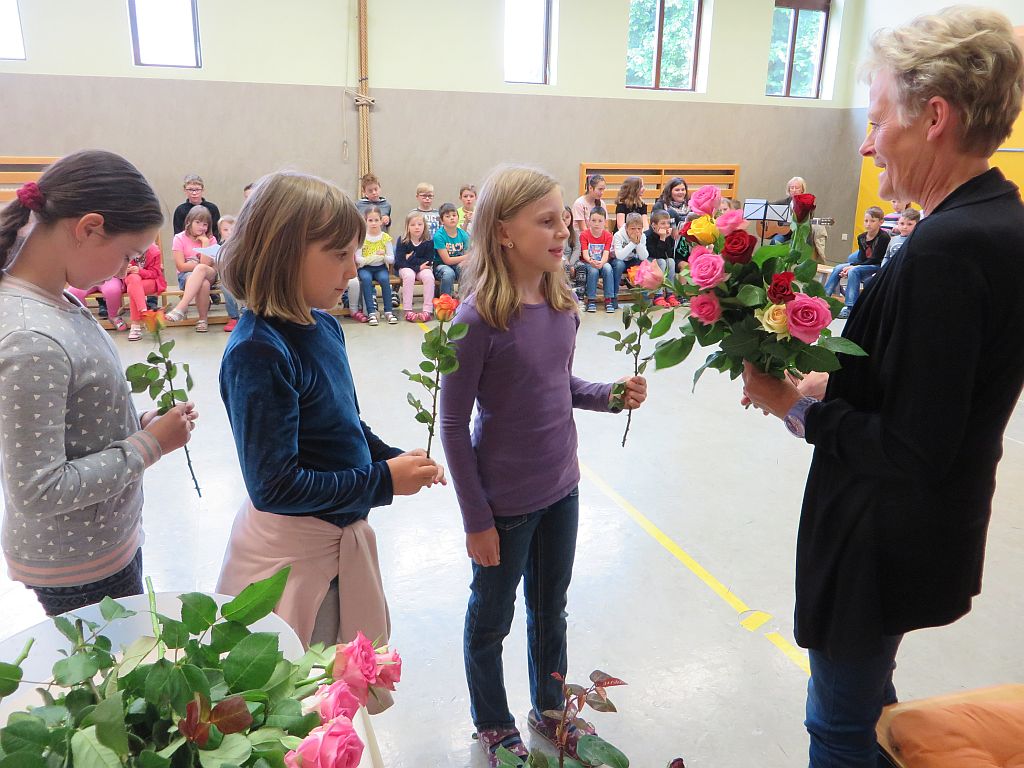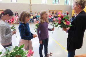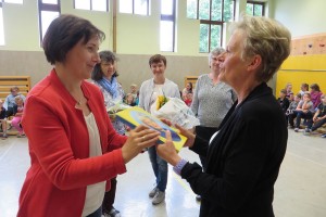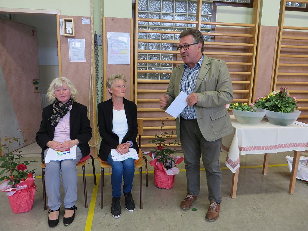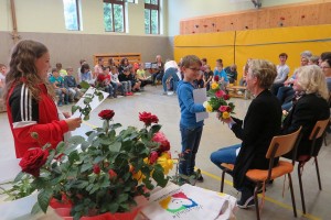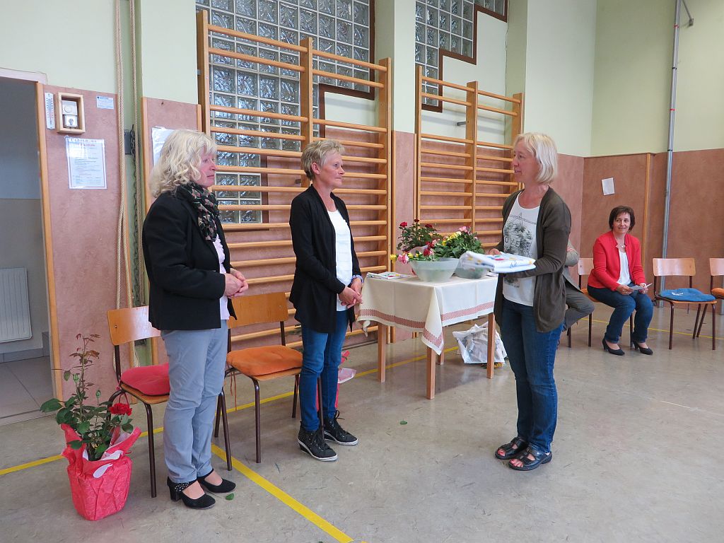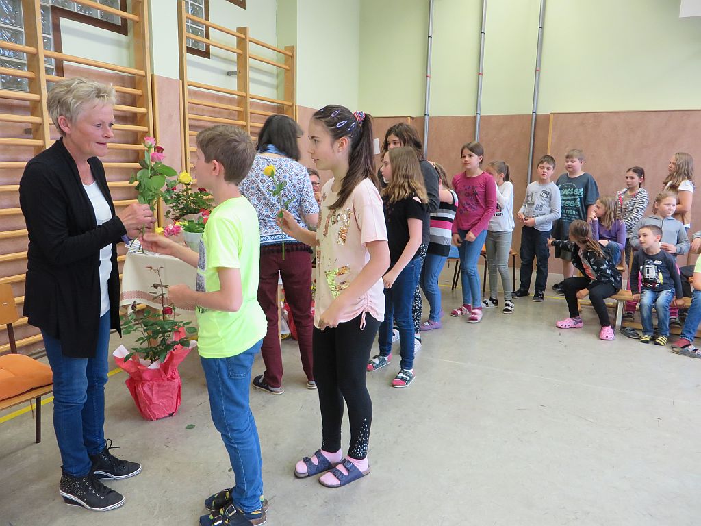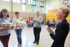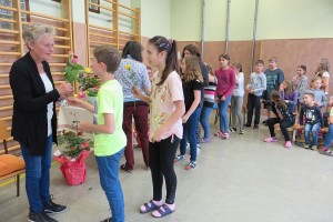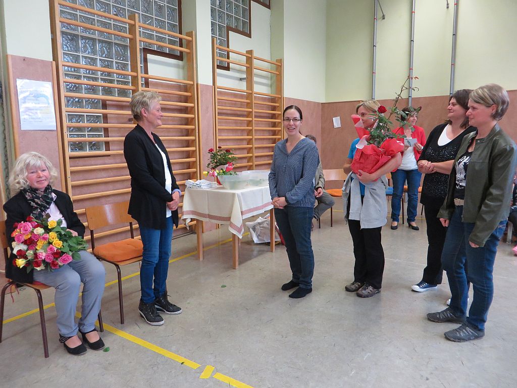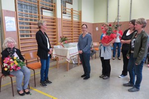 Besonderer Dank wurde auch Frau Maria Schulmeister ausgesprochen, denn auch sie wird in Pension gehen. Wir dankten ihr für die jahrzehntelange Mitarbeit bei der Großreinigung und den vielen Diensten, die sie an unserer Schule geleistet hat mit Blumen und guten Wünschen.