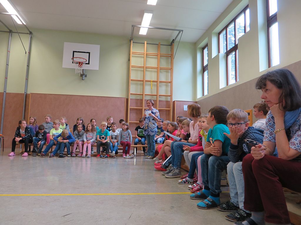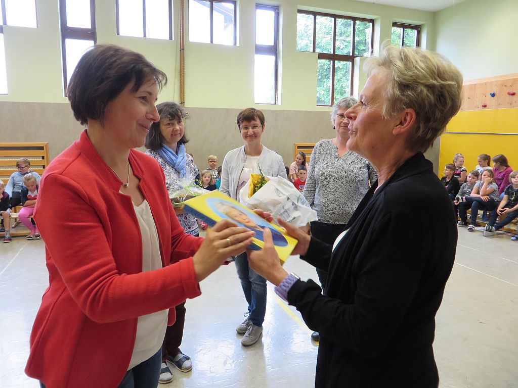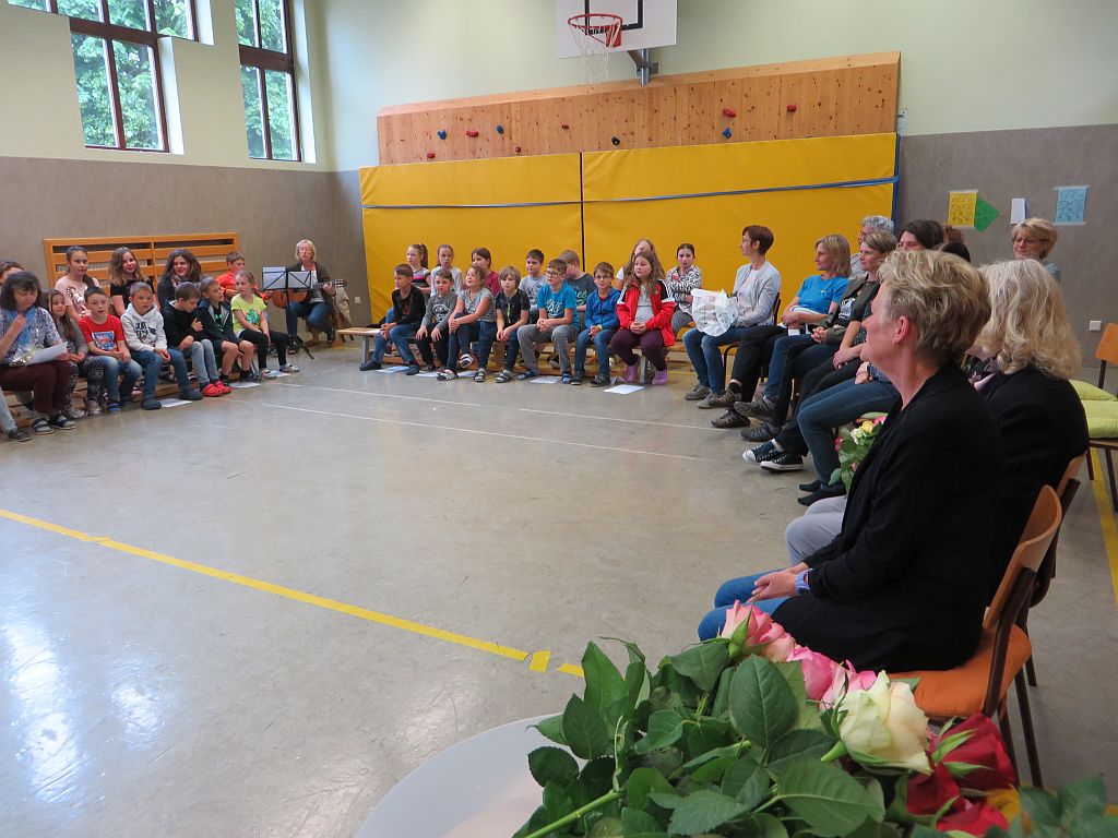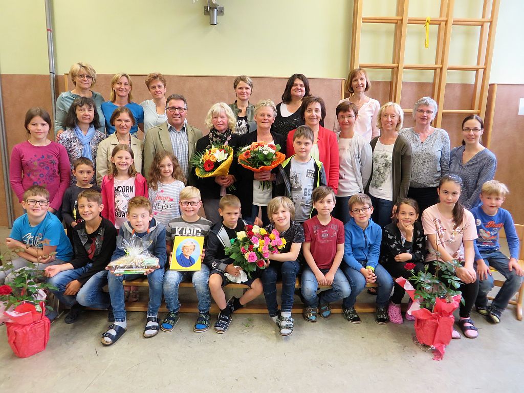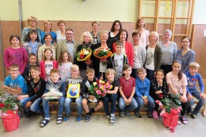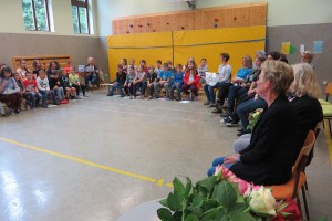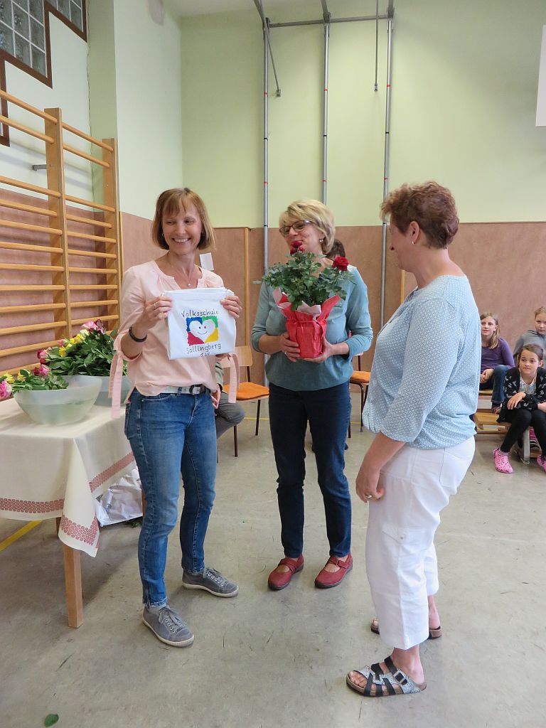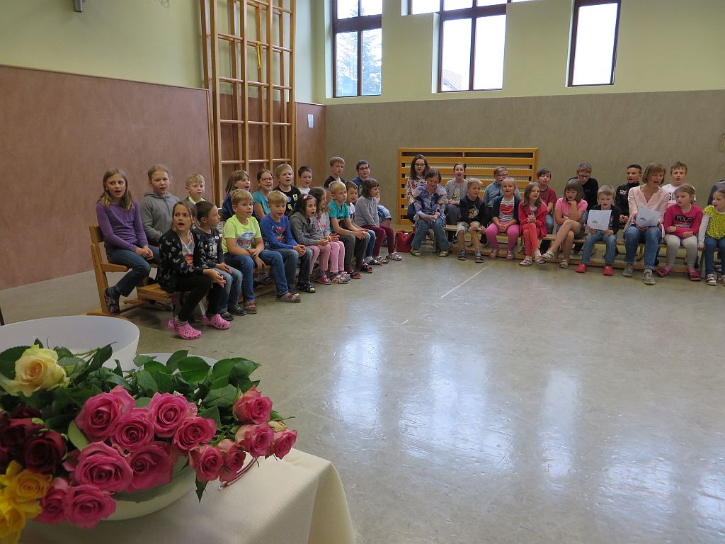 Die Kinder und die Lehrerinnen der Volksschule Sallingberg, die Musikschullehrerinnen, die Elternvertreterinnen und der Bürgermeister gratulierten ihr im Rahmen einer Feier mit Liedern, Gedichten, einem Freundebuch, einer bunt bedruckten Schürze, Gutscheinen, Blumen und sehr persönlichen Geburtstagswünschen.