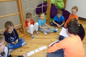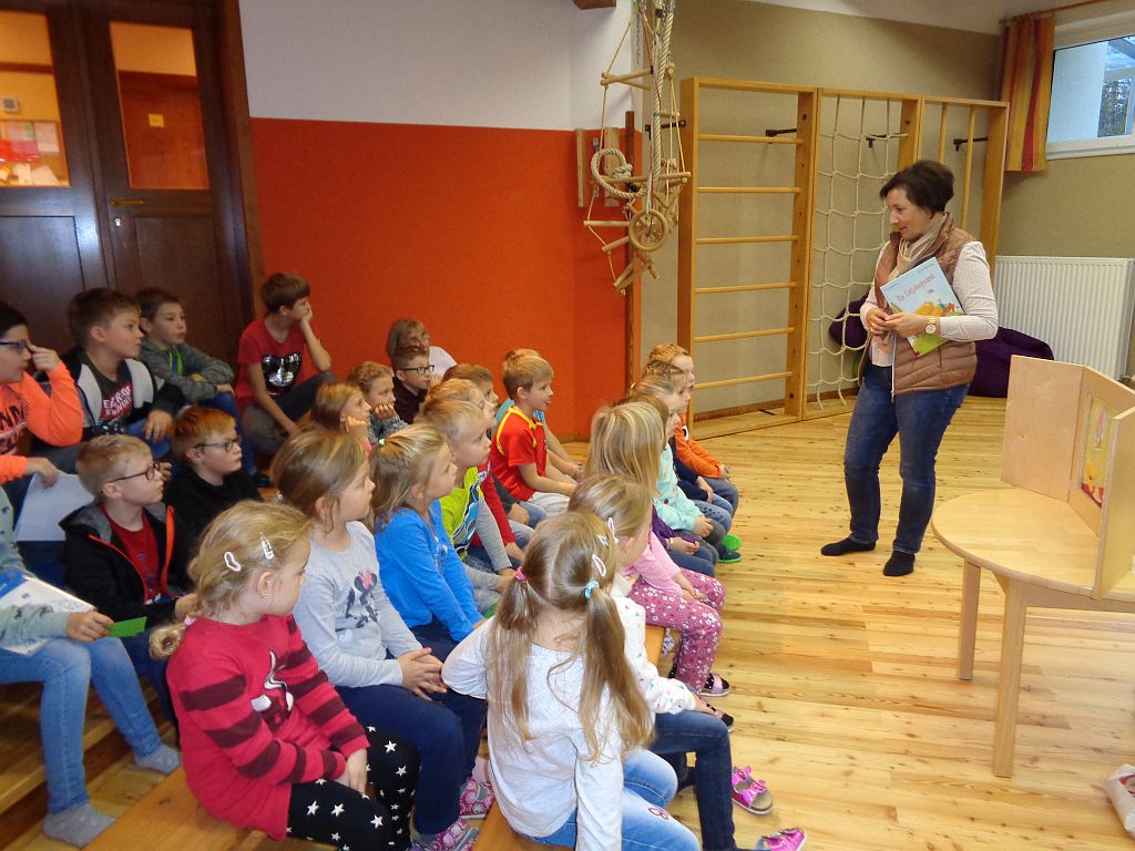 Anlässlich der Buchausstellung besuchten die Kindergartenkinder die 3. Klasse in der VS. Nach einem gemeinsamen märchenhaften Spiel wurde den Kindern der „Froschkönig“ von den Schulkindern vorgelesen. Nach einem dazu passenden Arbeitsauftrag erhielten die Kinder noch ein Froschlesezeichen als Andenken.