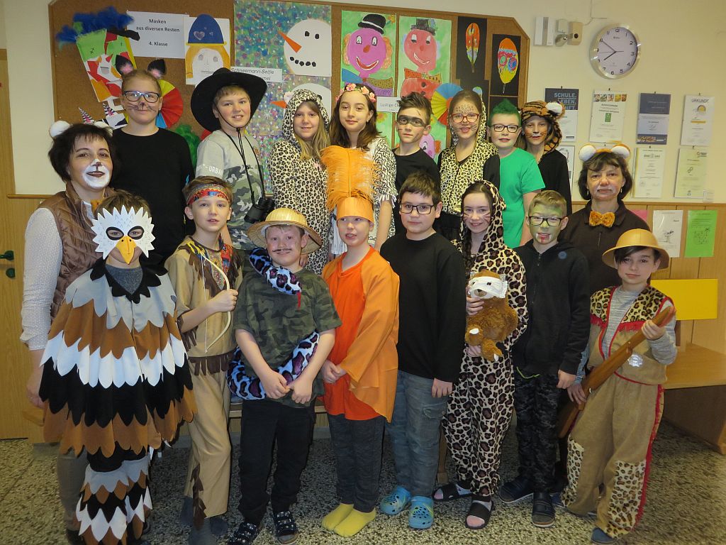 An diesem Vormittag wurde viel gesungen, musiziert, gespielt und gerätselt. Wir lernten auch Tiere und Planzen des Regenwaldes und die Geschichte „Dschungelbuch“ kennen. Zum Abschluss des fröhlichen Tages gab es ein Schulkino.