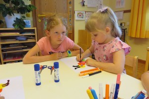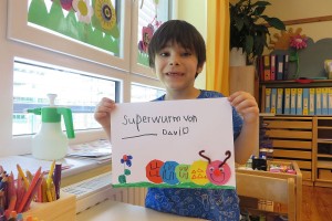 Es war besonders schön für die Kinder der ersten Klasse, den kommenden Schulkindern ein ganzes Buch vorlesen zu dürfen. Den Superwurm aus der Geschichte bastelten alle dann mit Feuereifer und Engagement. Zum Abschluss waren alle gemeinsam im Garten.