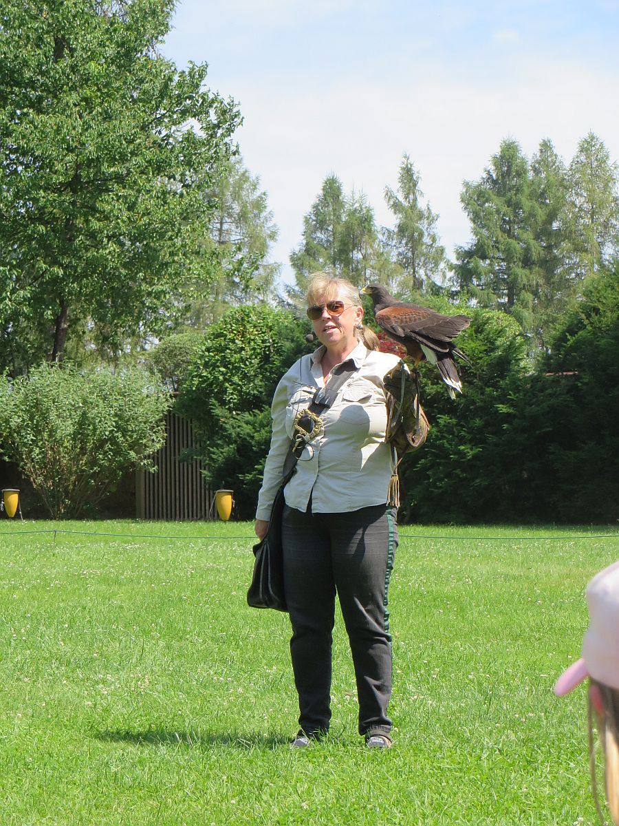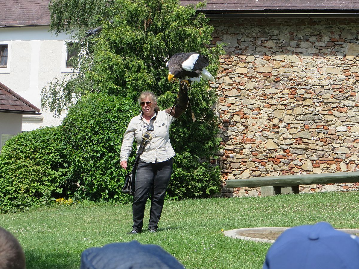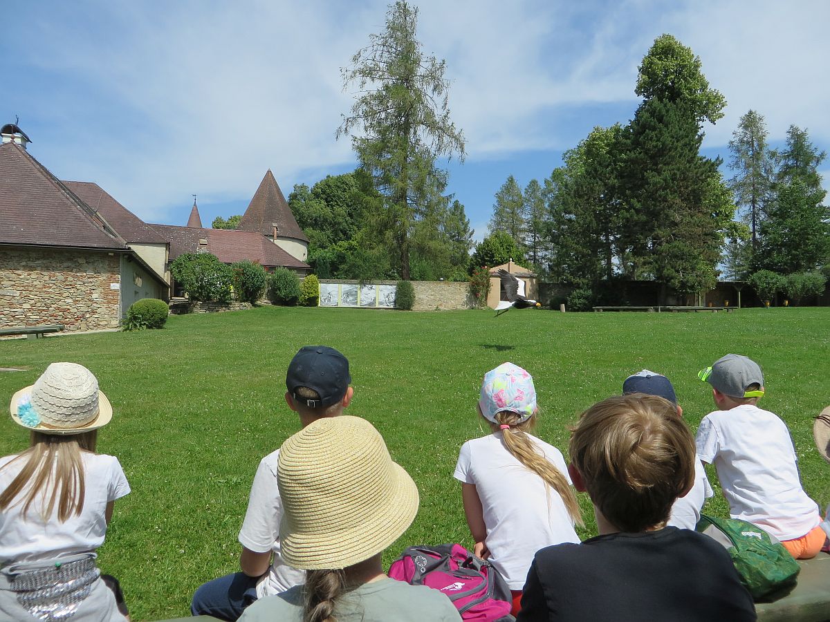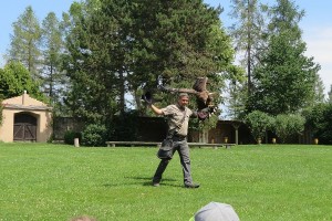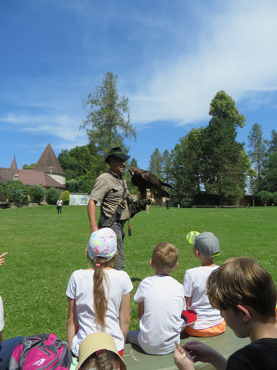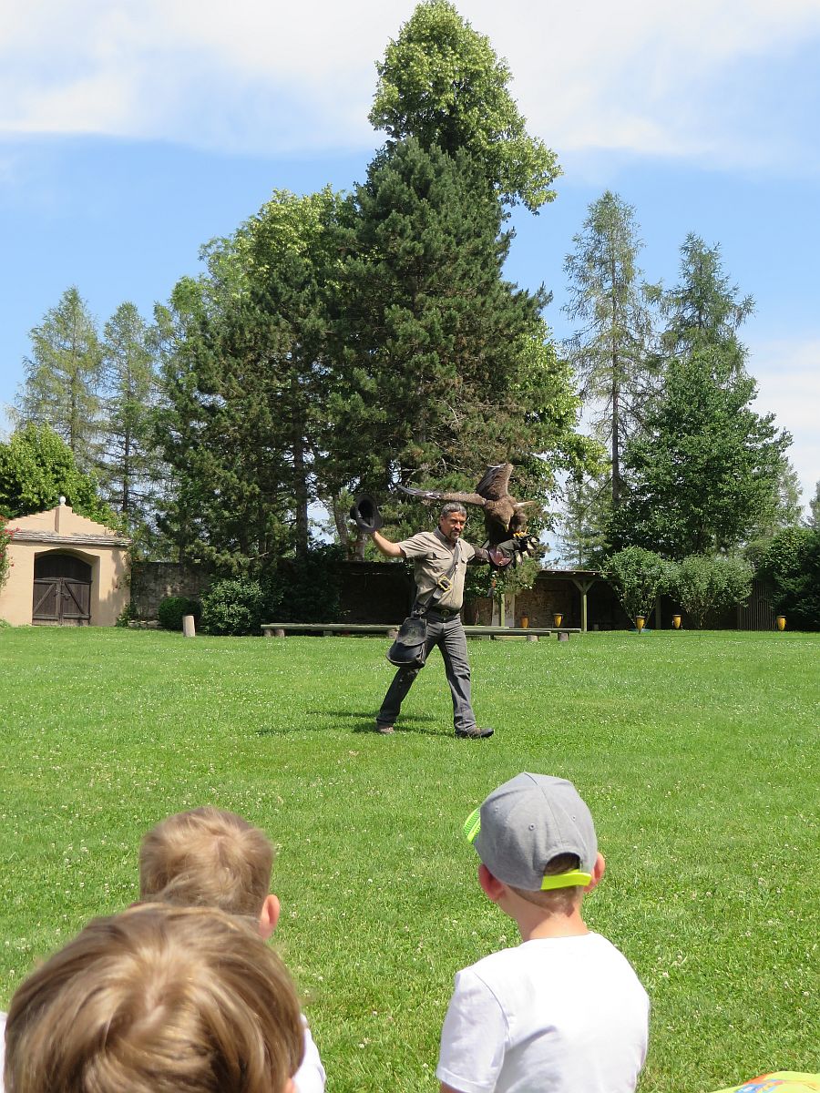 Dann kam der lang erwartete Höhepunkt des Tages: die Flugshow! Viele verschiedene Greifvögel, Geier und sogar eine Eule beeindruckten uns alle mit ihren Flug- und Beutefangkünsten.