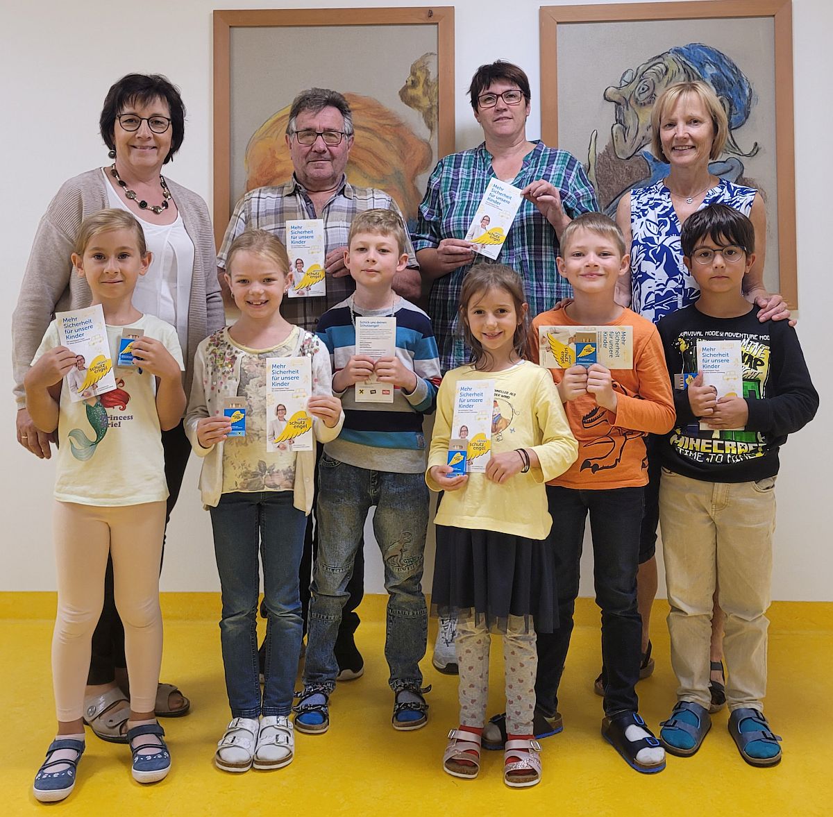 Zusätzlich brachten uns Bgm. Leopold Bock und Vzbgm. Cornelia Juster Buntstifte und Folder von der Schutzengelaktion des Landes NÖ. Damit sollen die Kinder zur Achtsamkeit im Straßenverkehr sensibilisiert werden. Danke!