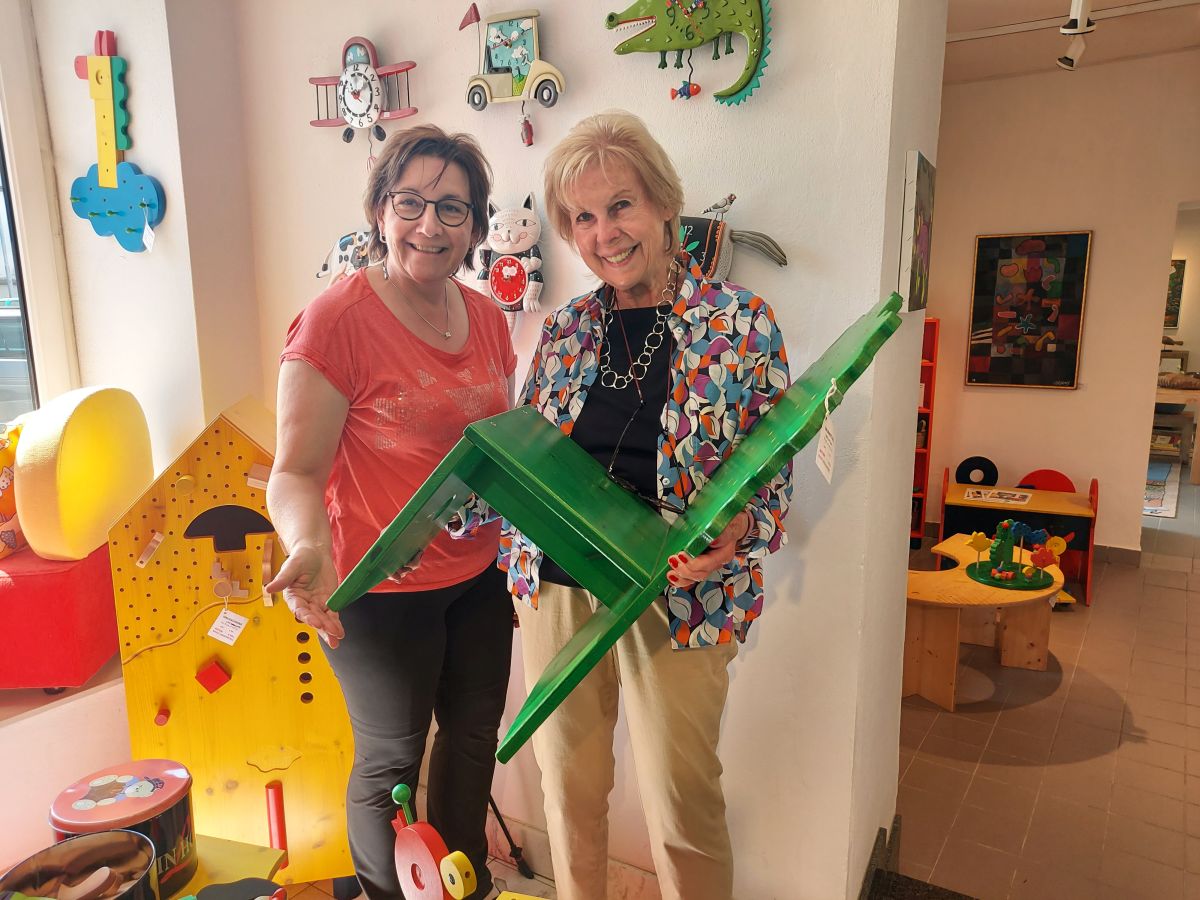 Am letzten Sonntag konnte Elfriede Schierhuber die dazu passenden grünen Baumsesselchen im IDEA Design Center zu einem sehr guten Preis erwerben.