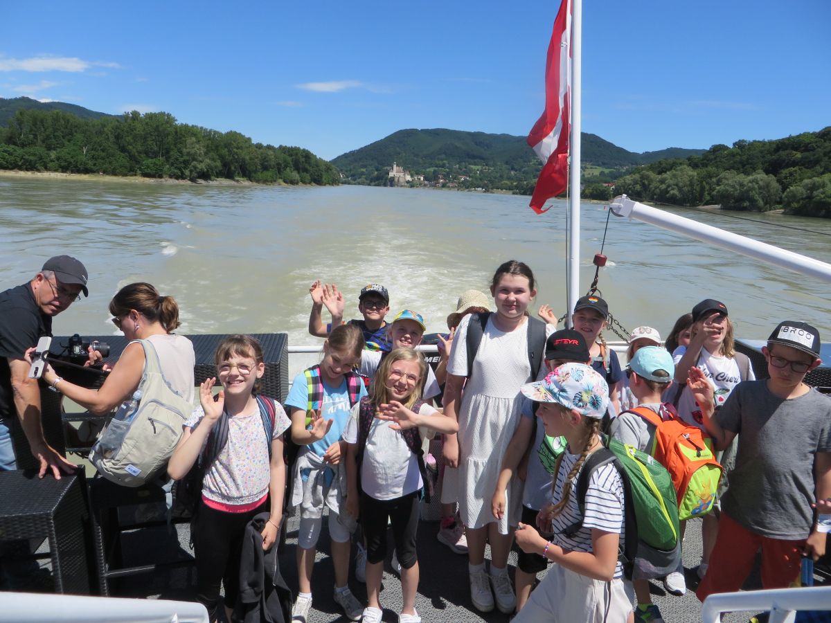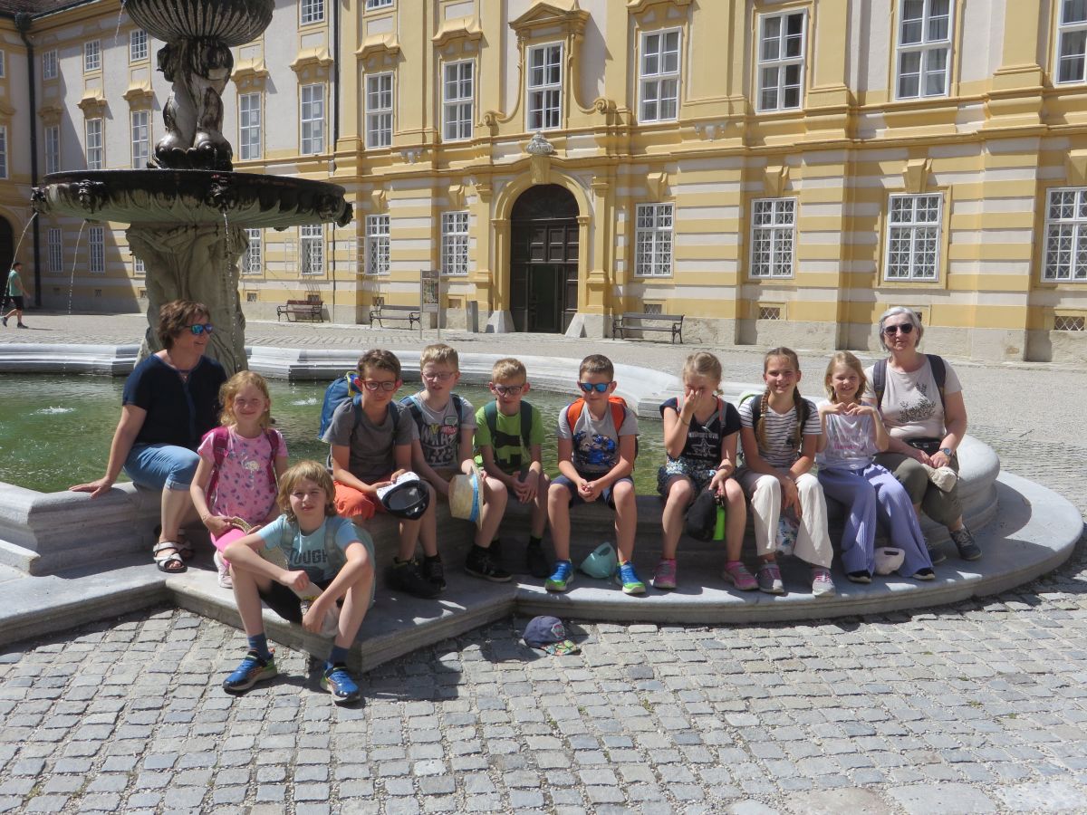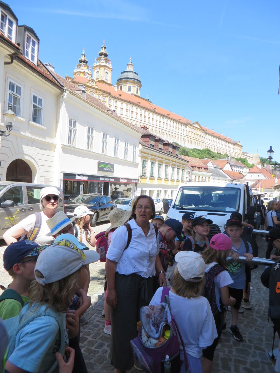 Anschließend ging es weiter mit einer Schifffahrt von Krems nach Melk. Dort wurden wir schon von der Reiseleiterin erwartet. Auf dem Programm stand eine interessante Altstadtführung mit Abschluss im Hof des Stiftes Melk. Schließlich fuhren wir mit dem Bus wieder zur Jugendherberge. Nach dem Abendessen marschierten wir noch zum wunderschönen und nahegelegenen Spielplatz.
