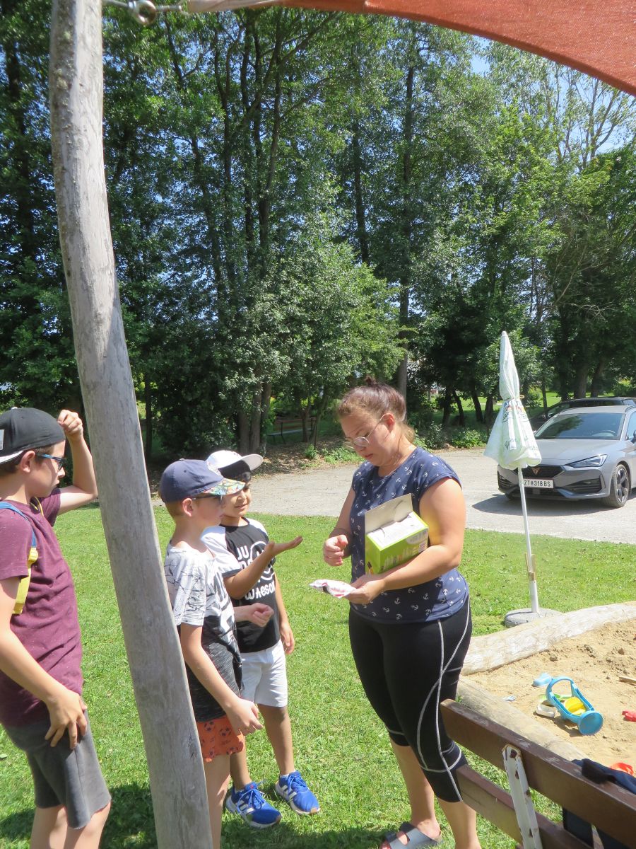 Frau Niefergall überraschte uns mit köstlichen, hausgemachten böhmischen Keksen und Frau Pehn spendierte für alle ein Twinni. Die Kinder griffen freudig zu.