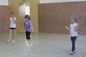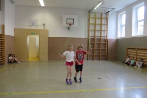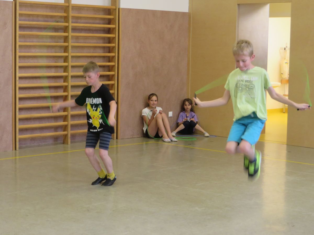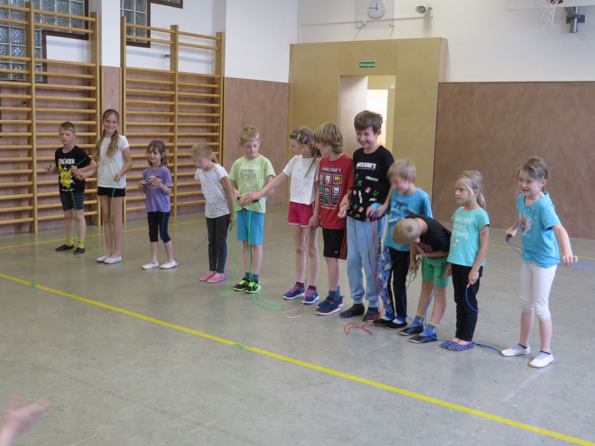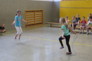 Zu flotter Musik zeigten die Skipper zuerst in Linienaufstellung eine gemeinsame Sprungabfolge. Danach konnten die Kinder bei ihrer Choreografie zeigen, was sie im Laufe des Jahres gelernt haben.
