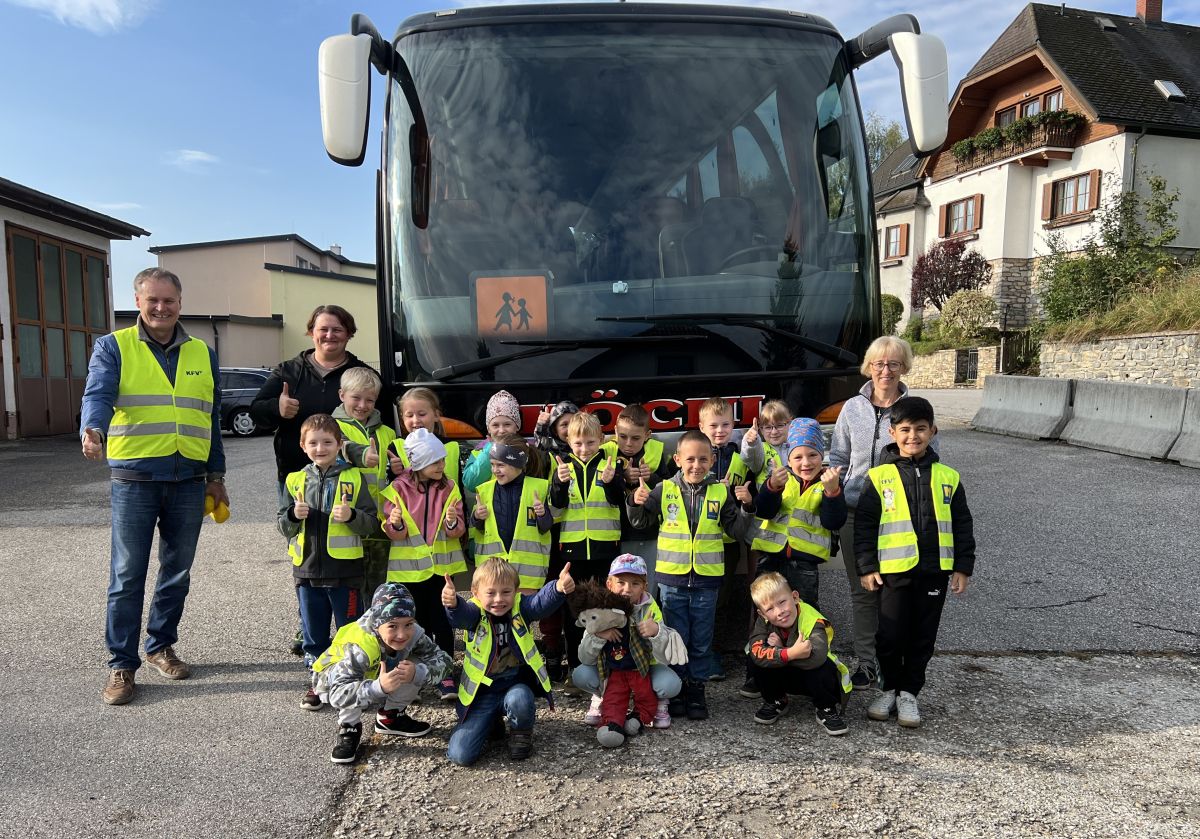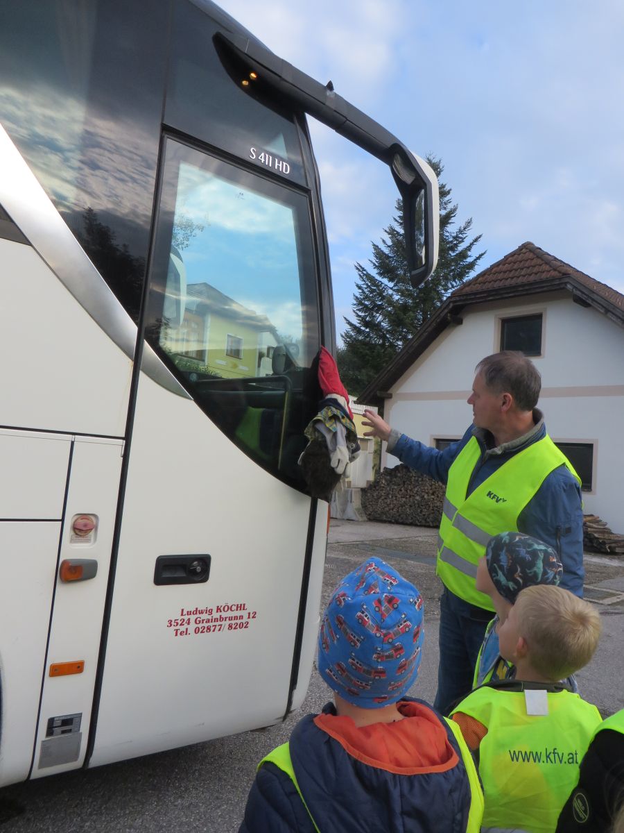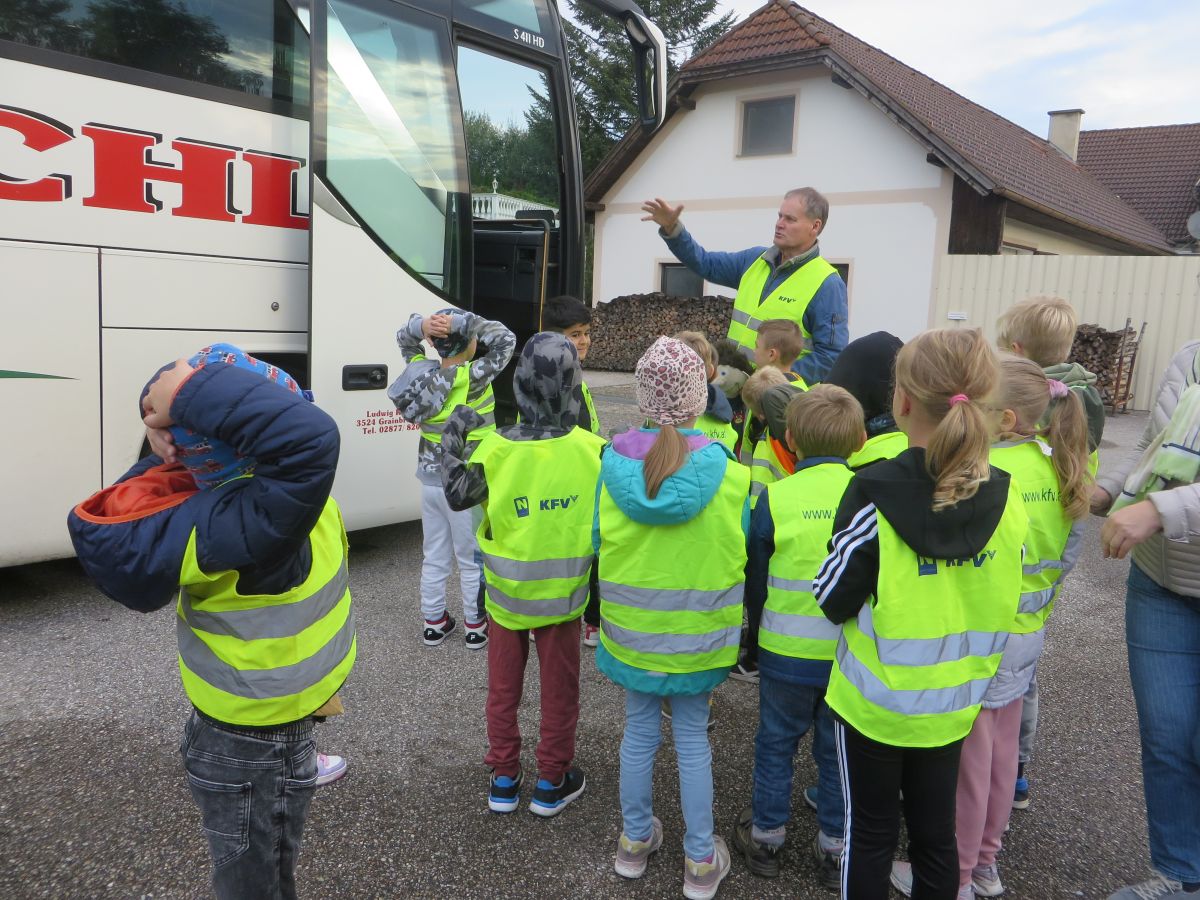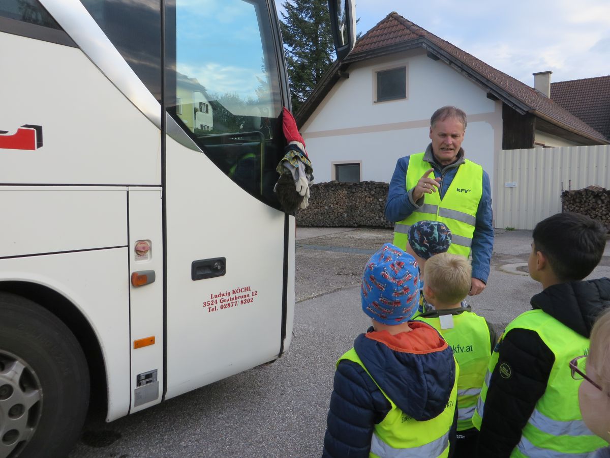 Sehr anschaulich führte uns ein Mitarbeiter des Kuratoriums für Verkehrssicherheit vor Augen, welche Auswirkungen ein Fehlverhalten an der Bushaltestelle oder im Schulbus haben kann.