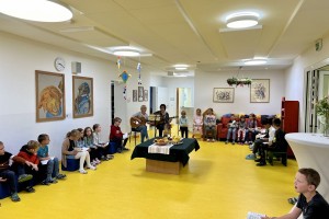 Der Projekttag begann für die Kleinen mit dem Gestalten der Sonnenblume und der Erntekrone für das Erntedankfest.