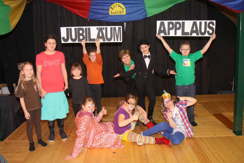 Von besonderer Wertschätzung zeugten die Festansprachen von Bildungslandesrätin Mag. Barbara Schwarz und Landesschulinspektor Hofrat Leopold Rötzer. Höhepunkt war die Aufführung „Zirkus Saligo“ (adaptiert nach „Zirkus Morio“), bei der alle Kinder der Volksschule entsprechend ihren Talenten mindestens eine Rolle übernahmen. Es traten Bären, Pinguine, Löwen, Pferde, Schauspieler, Clowns Artisten, Akrobaten, Rope-Skipper, die Zirkusband und der Schulchor mit Begeisterung auf. Alle Lehrkräfte und die Freizeitbetreuerin der VS trugen zum Gelingen des Schulfestes bei. Die Eltern überraschten die Kinder mit einer Jubiläumstorte und die Lehrkräfte mit Blumen bzw. Wein.