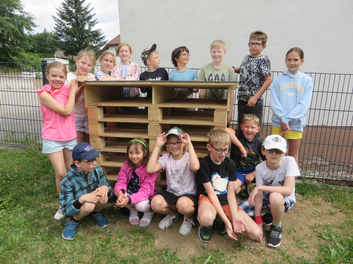 Wir danken besonders dem Herrn Andreas Winkler für den Bau des schönen Hotels aus Paletten und allen anderen Eltern für die Organisation, die Füllmaterialien und die blumige Dekoration.