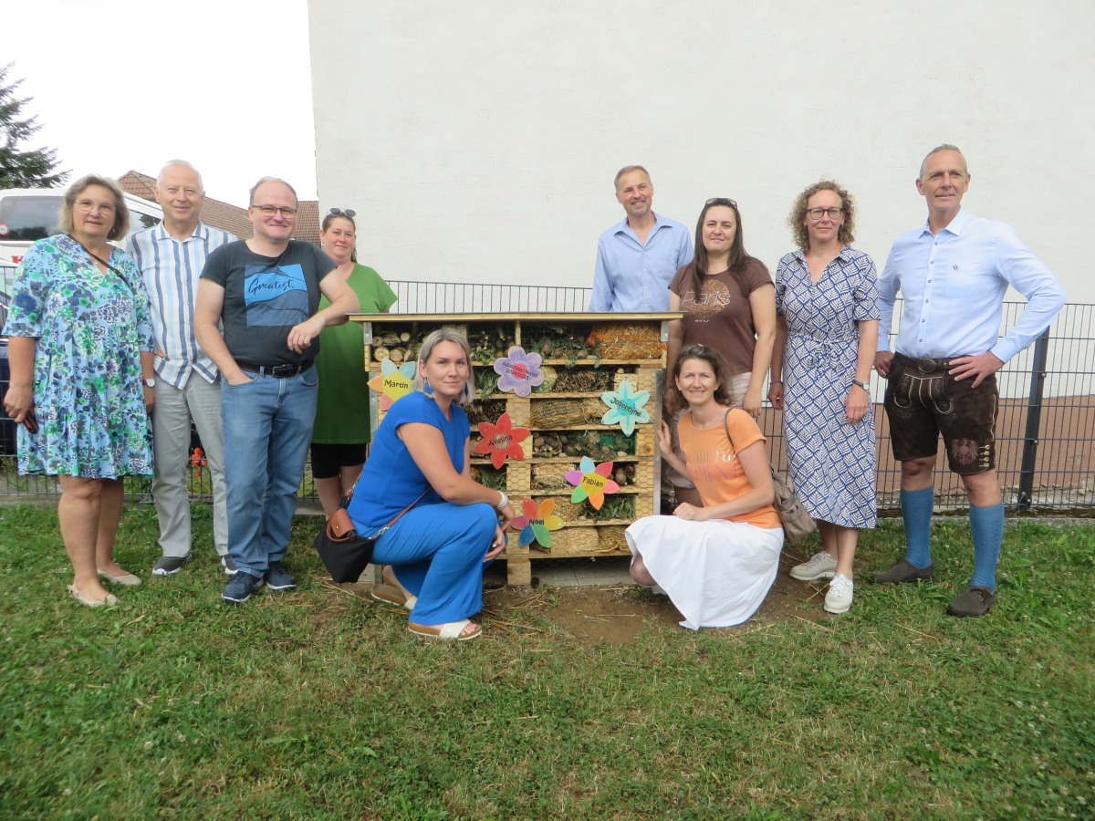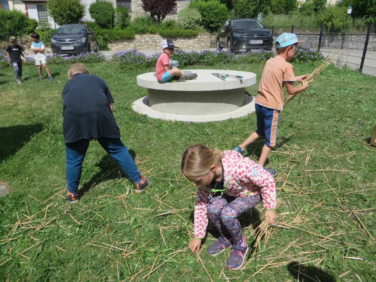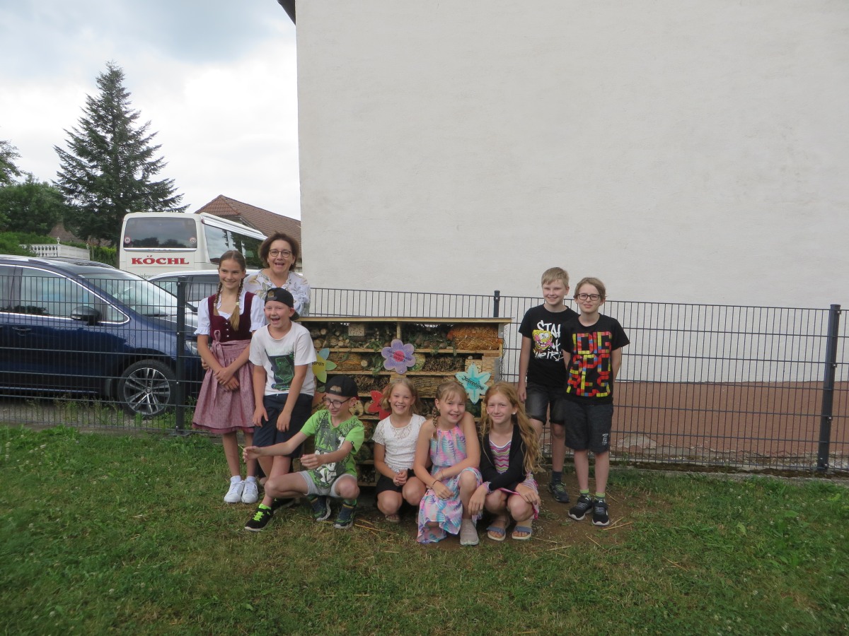 Die Eltern der 4. Schulstufe schenkten der Volksschule zum Schulschluss ein Insektenhotel, welches von den Kindern befüllt wurde.