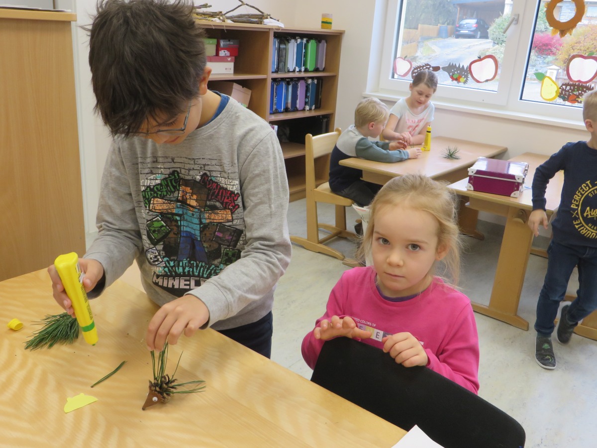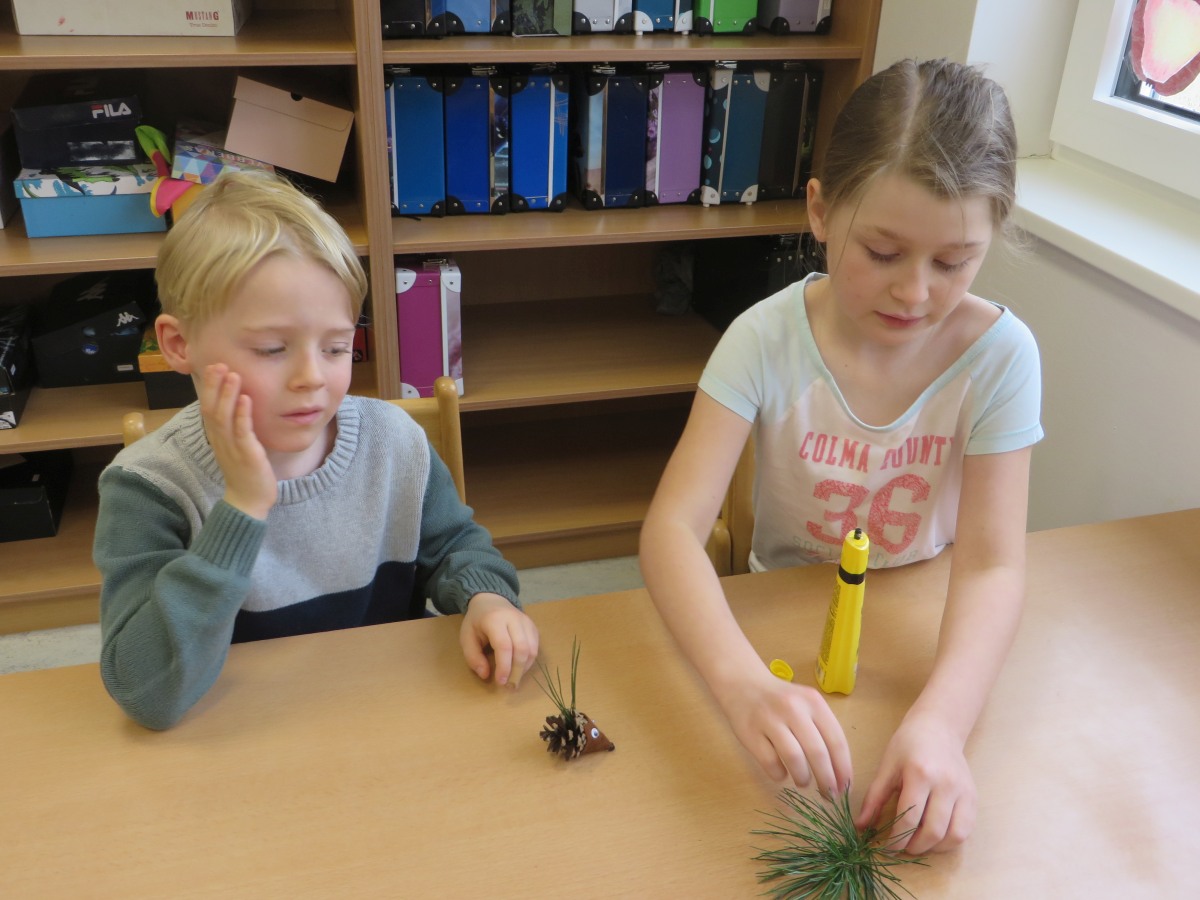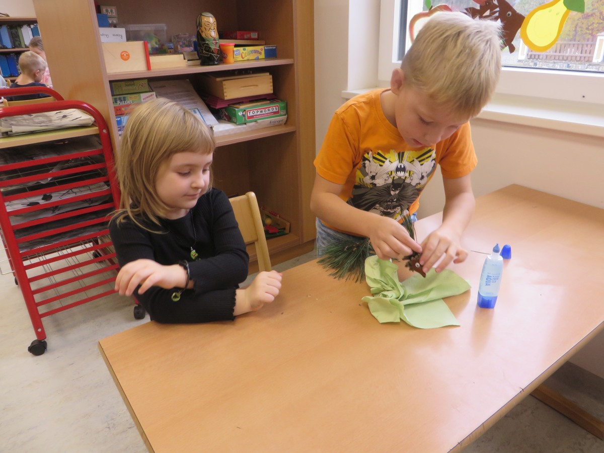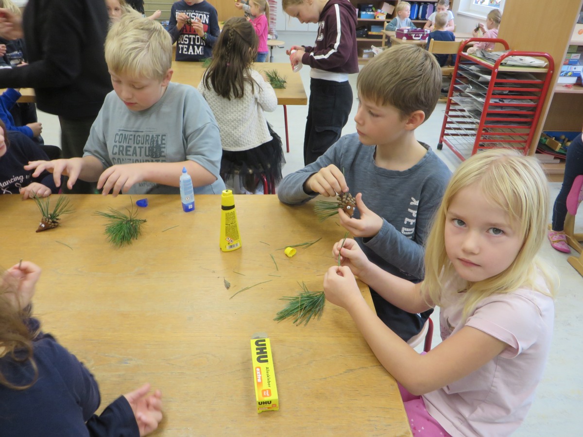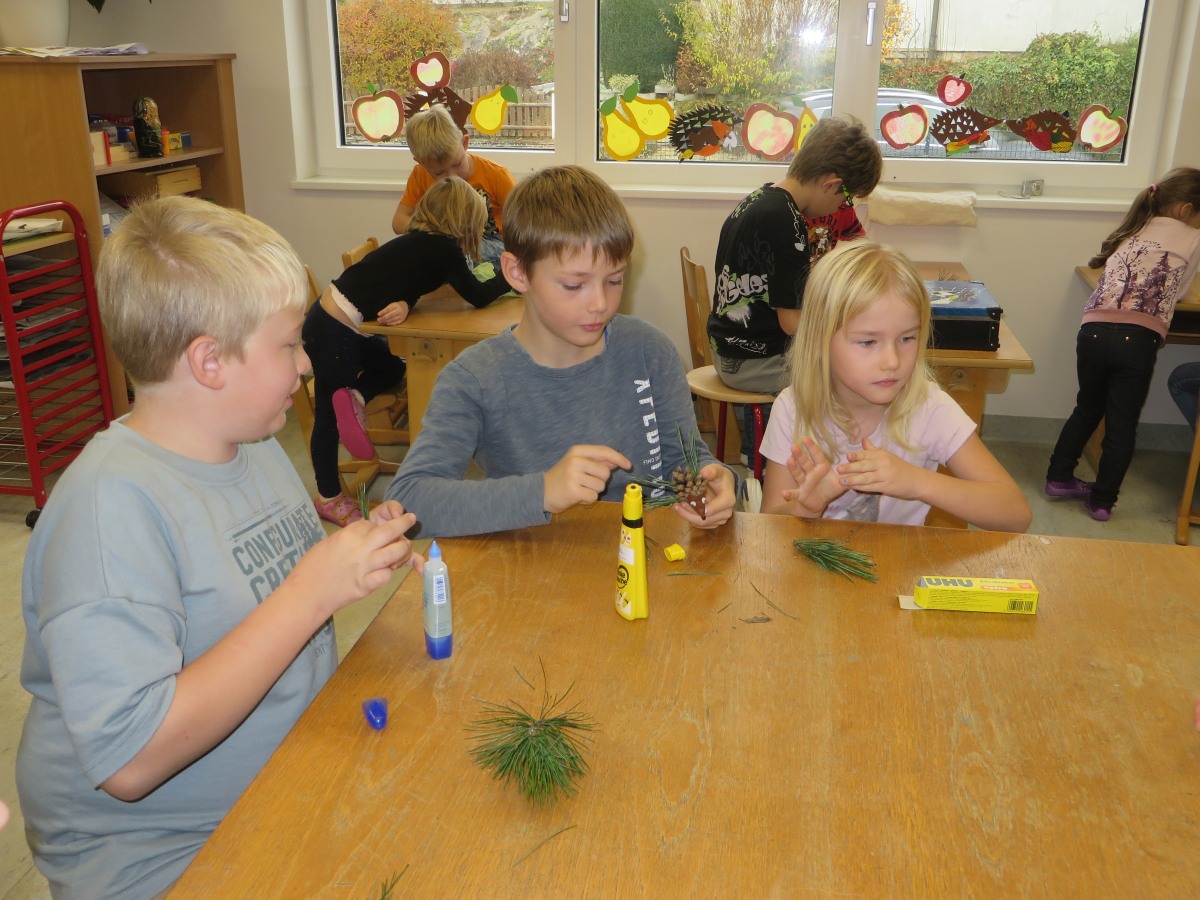 Zum Abschluss bastelten alle einen Igel aus Naturmaterialien.