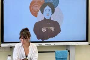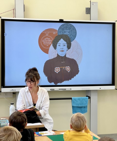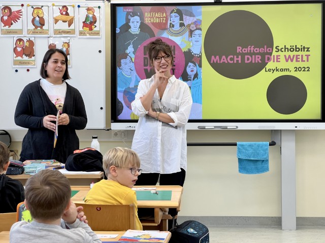 Voller Aufmerksamkeit verfolgten die Kinder der 1./2. Schulstufe und auch der 3./4. Schulstufe die Lesung der Autorin und Illustratorin Raffaela Schöbitz. In regem Austausch mit den Schulkindern präsentierte Frau Schöbitz einige Lebensgeschichten von außergewöhnlichen Frauen.