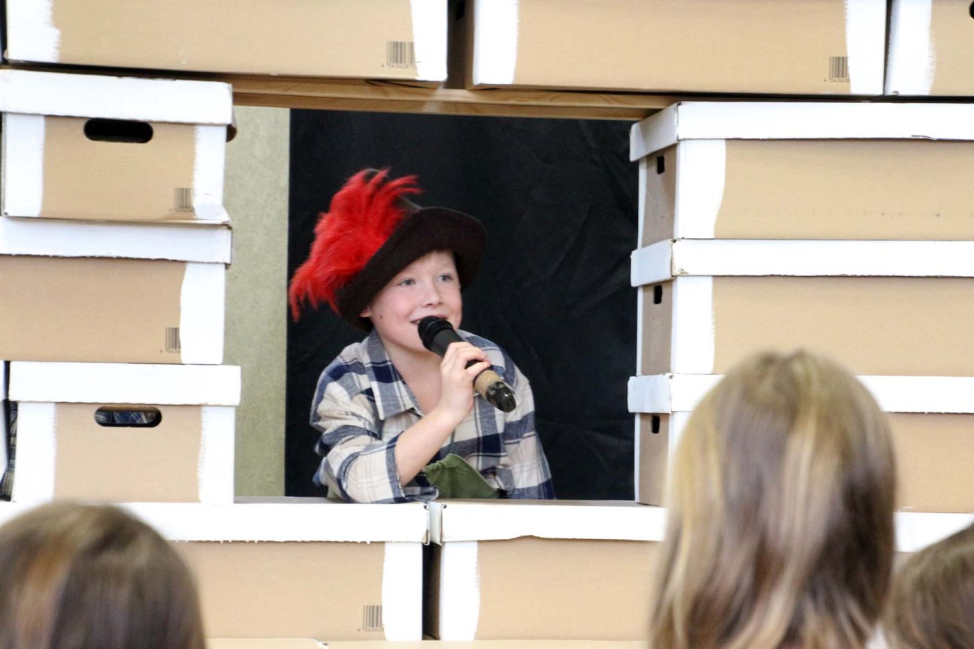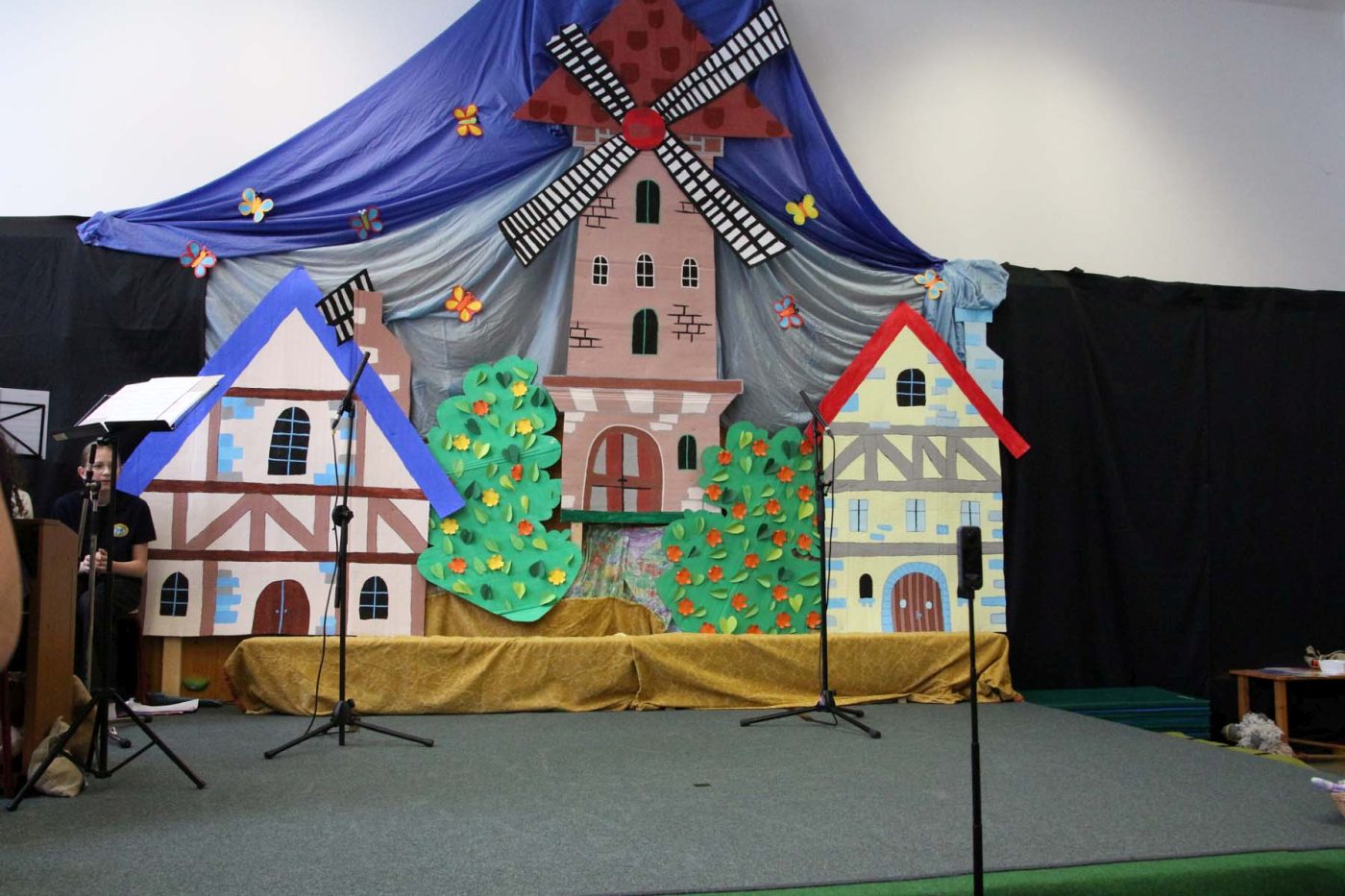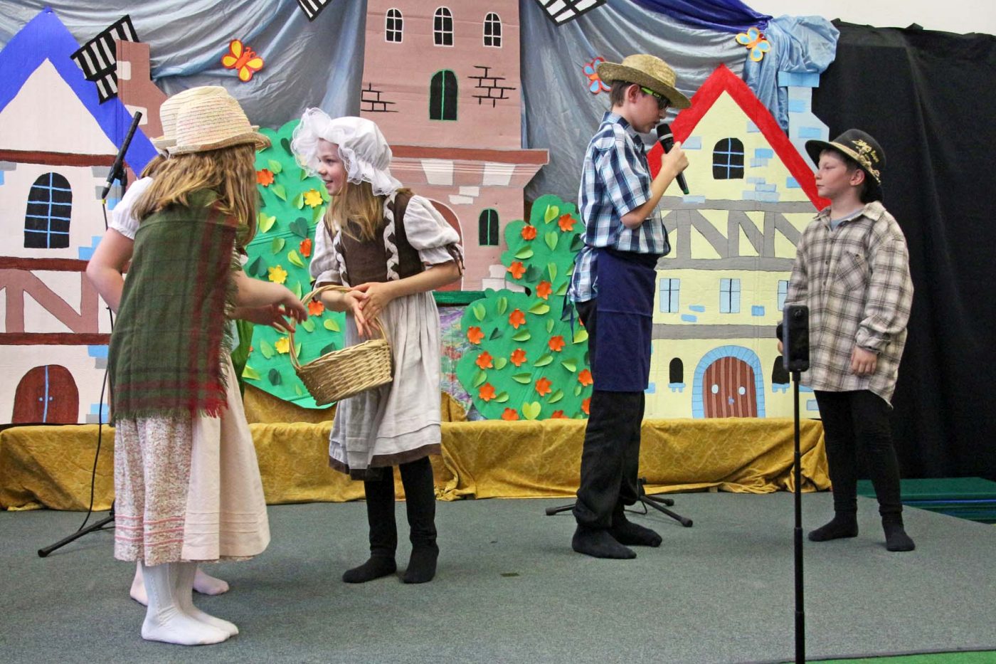 Der amüsante Inhalt drehte sich natürlich um einige Schildbürger-Streiche – darunter der Bau eines dreieckigen Rathauses ohne Fenster, der sehr kreativ mit dem Aufbau einer Mauer aus Schachteln umgesetzt wurde, die Bürgermeisterwahl mittels Reimwettbewerb und der Kauf eines Maushundes gegen die Mäuseplage. Die witzigen Texte brachten das Publikum immer wieder zum Lachen. Viele der in originellen Kostümen gekleideten jungen Darsteller entpuppten sich dabei als talentierte Schauspieler. Das gilt auch für die Gesangssolistinnen – vor allem Victoria Glasner begeisterte mit ihrem Luftschlösserlied die Zuhörer.