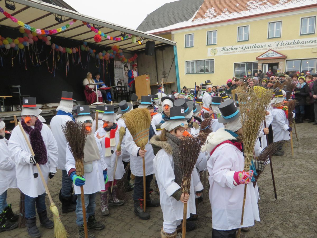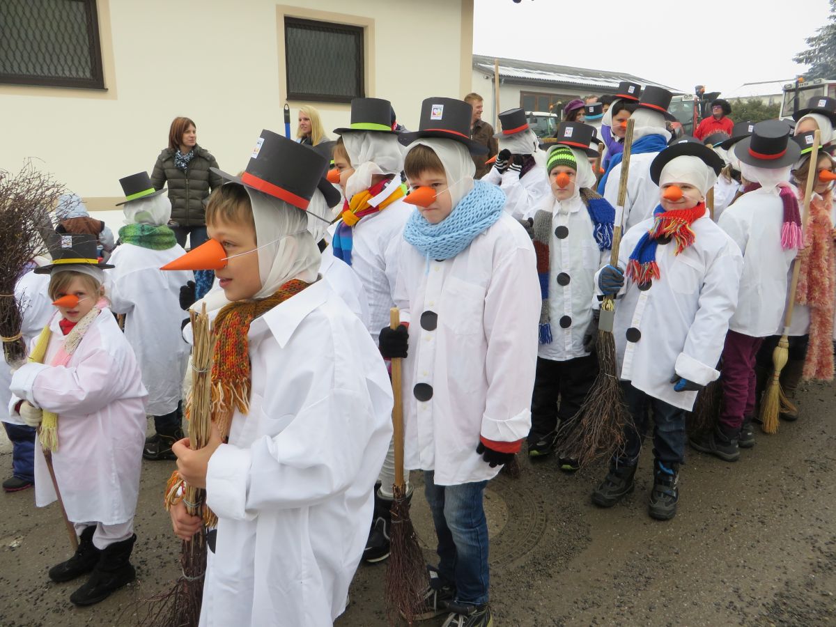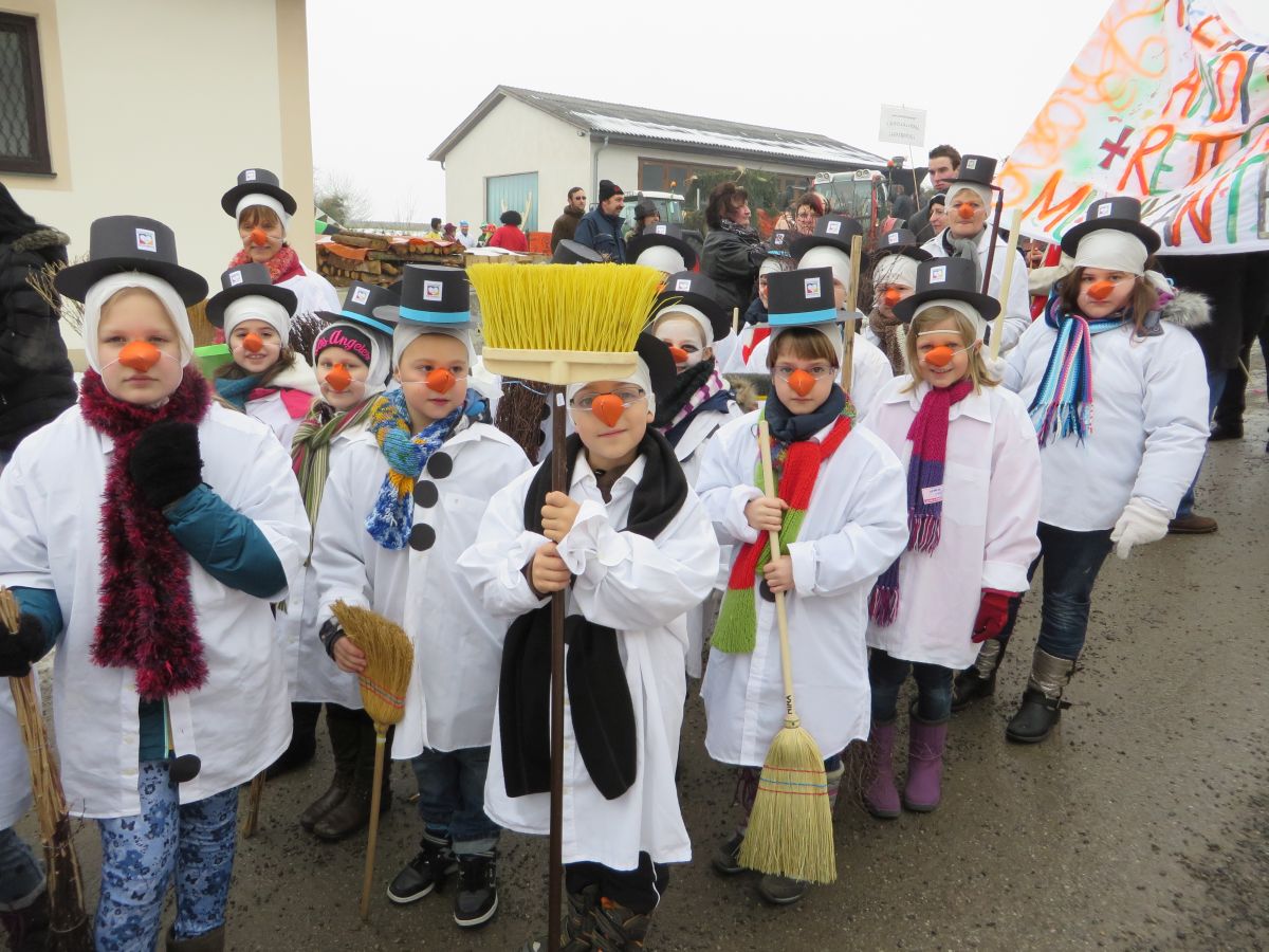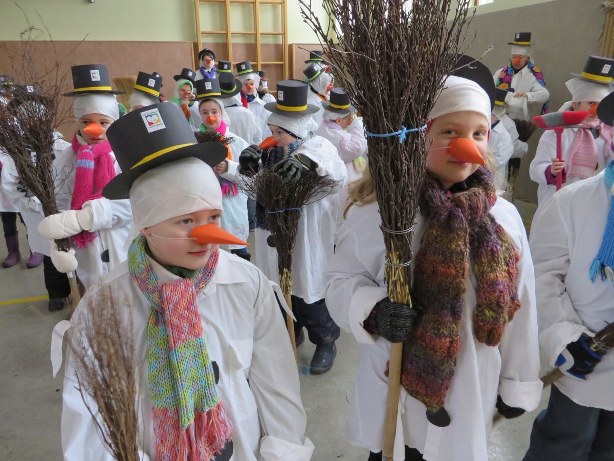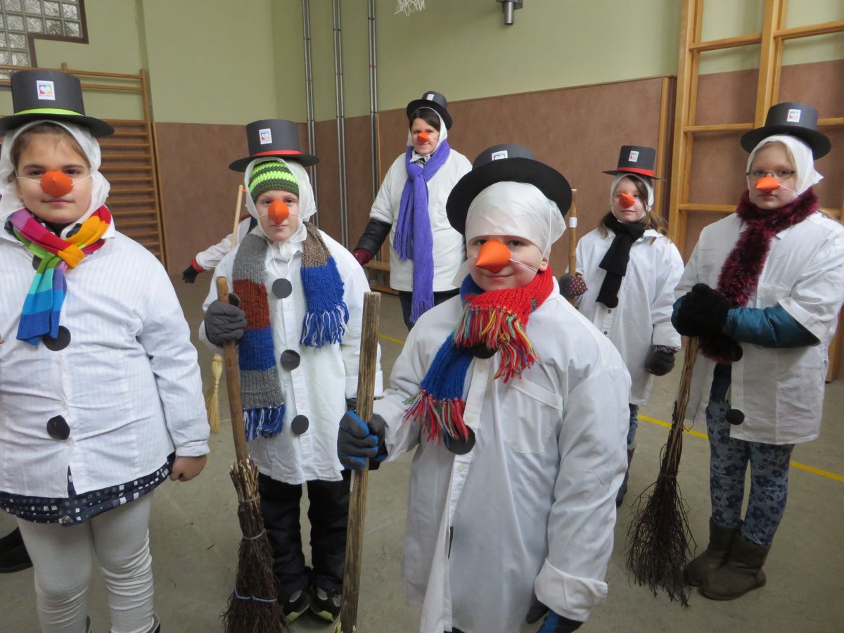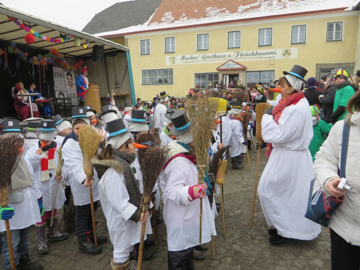 Dafür stellte jedes Volksschulkind im Werkunterricht eine Schneemannverkleidung her. Im Musikunterricht wurde ein Tanz zu „Frosty the Snowman“ einstudiert, den am Faschingssonntag alle 60 „Schneemannkinder“ vorführten.